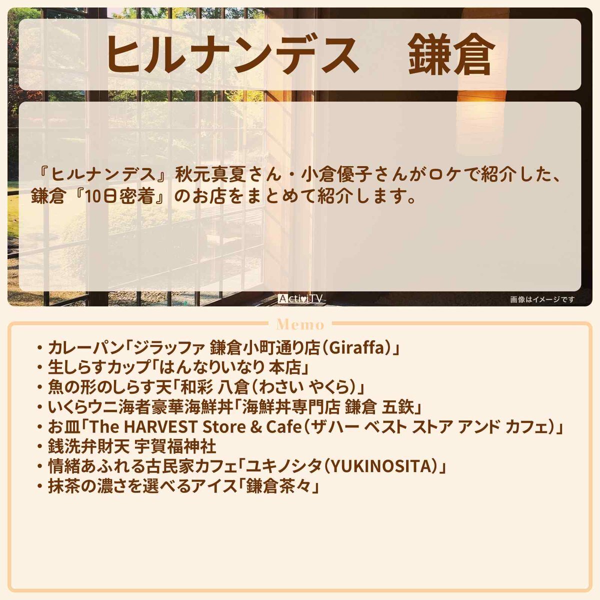 ✳️ザ·ハーベストストア&カフェ 30%OFFカフェ付食器店 ✳️鎌倉茶々 濃さが選べる抹茶アイス 🔸SNS映え竹林穴場スポット📷️ 英勝寺 🔸銭洗弁財天宇賀福神社 お金を洗うパワースポット✨ 鎌倉おすすめ紅葉も🍁 👉️a.r10.to/hgtI8d #ヒルナンデス #ad 秋元真夏 小倉優子