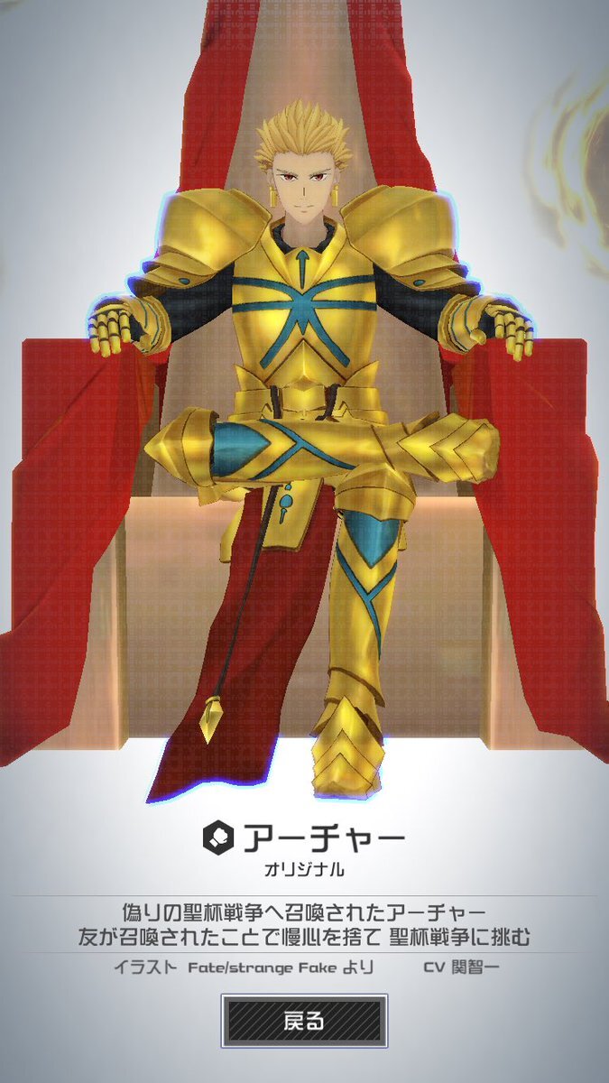 返信先:@amyu_umamusuFateシリーズのstrangeFakeとのコラボだね👀 私の推しはこの金ピカのギルガメッシュっていうキャラです!! 声優が小林ゆうさんなのとか、キャラ的にも良くてエルキドゥもかなり好きかな~