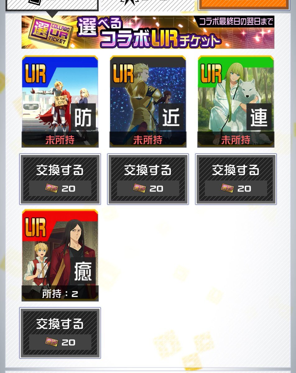 返信先:@cps_niconicoコラボ襲来!セイバー、アーチャー、ランサーの3体同時参戦とか、デッキ構成考えるだけでワクワクが止まらないJO。ヒロチケ全員プレゼントは神運営すぎる!小野友樹さん、関智一さん、小林ゆうさんの豪華ボイスをバトルで聴きまくるぞ。