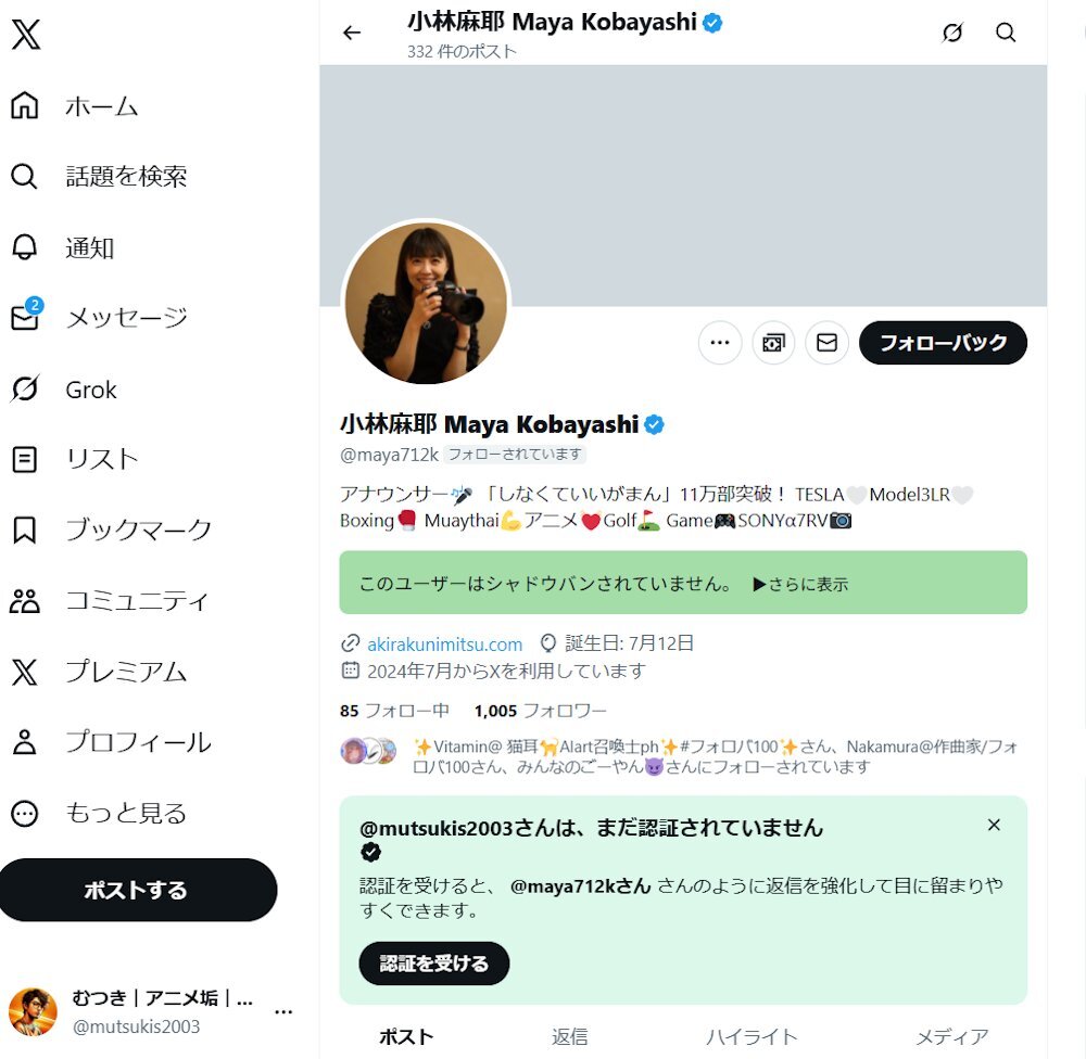 アニメ関係かゲーム関係か わかりませんが、ありがたいことに フォローいただきました。 改名時に前垢は削除されているんでしょうか 今は、新潟に移住されているんですかね パッと調べただけですが・・・ #小林麻耶 san #アニメ好きな人と繋がりたい pic.x.com/1iQ8hxhFGz