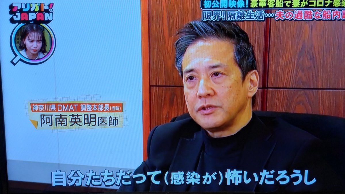 昨日20日(木)フジテレビ【アリガト!JAPAN】でダイヤモンドプリンセス号船内の当時の映像が放送されました。映画【フロントライン】で小栗旬さん演じる結城医師のモデルのDMAT調整本部長阿南医師も出演されています。現在TVerで見逃し配信されてます😊 pic.x.com/RrQsRD1khW
