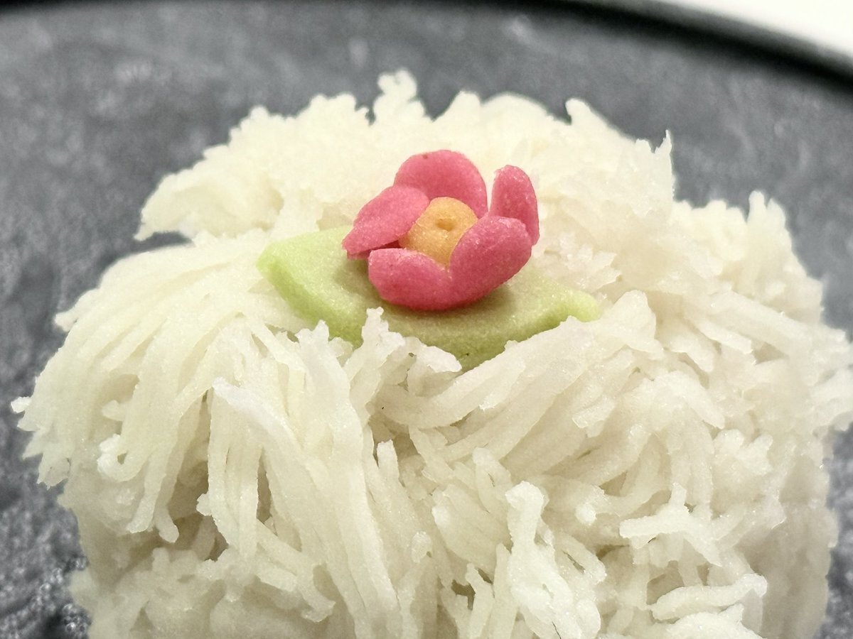 古くから茶花として好まれてきたという花、侘助を銘とする薯蕷製の練り切り「紅侘助」。 降り積もる雪の上、潔くもぽとりと落ちたか…想像かき立てる意匠が素敵✨ 芯にはしっかりとしたつぶあん。 薯蕷と小豆が慎み深く香る上品な味わいは、まさに侘び寂びの趣き。 なんとも美しいお菓子… pic.x.com/FxKtNs78WW