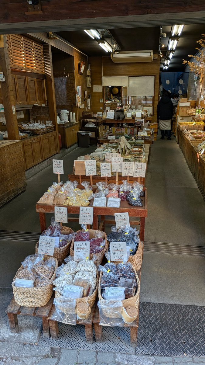 妻からのミッション、長瀞 大沢屋にて小豆・ささげ等買って来い! コンプリートしました。 長瀞駅=石畳の間の商店街にあるお店です。 紅葉シーズン終わると観光客が激減してまわりのお店は閉めちゃいますが、大沢屋は営業しています。 甘納豆も美味しいですよ。 あと、試食・試飲し放題! #大沢屋 pic.x.com/x6v5kTRvK0