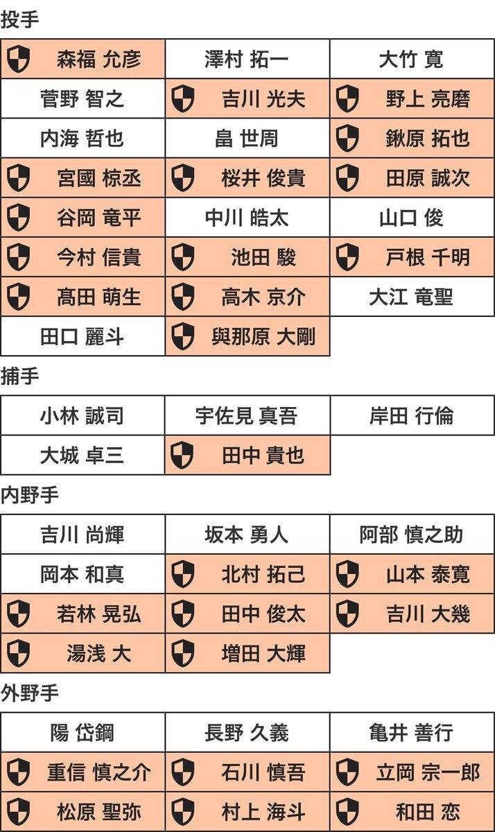 2025三井ゴールデングラブ賞有資格選手 (11月12日発表) 【セ遊撃手】 神 小幡(84試合、681回) D なし 巨 泉口(132試合、1148回) 中 山本泰(77試合、586・1回) 広 矢野(107試合、781・2回) ヤ なし ※昨年は広島矢野 【パ遊撃手】 ソ 野村(73試合、576回) 日