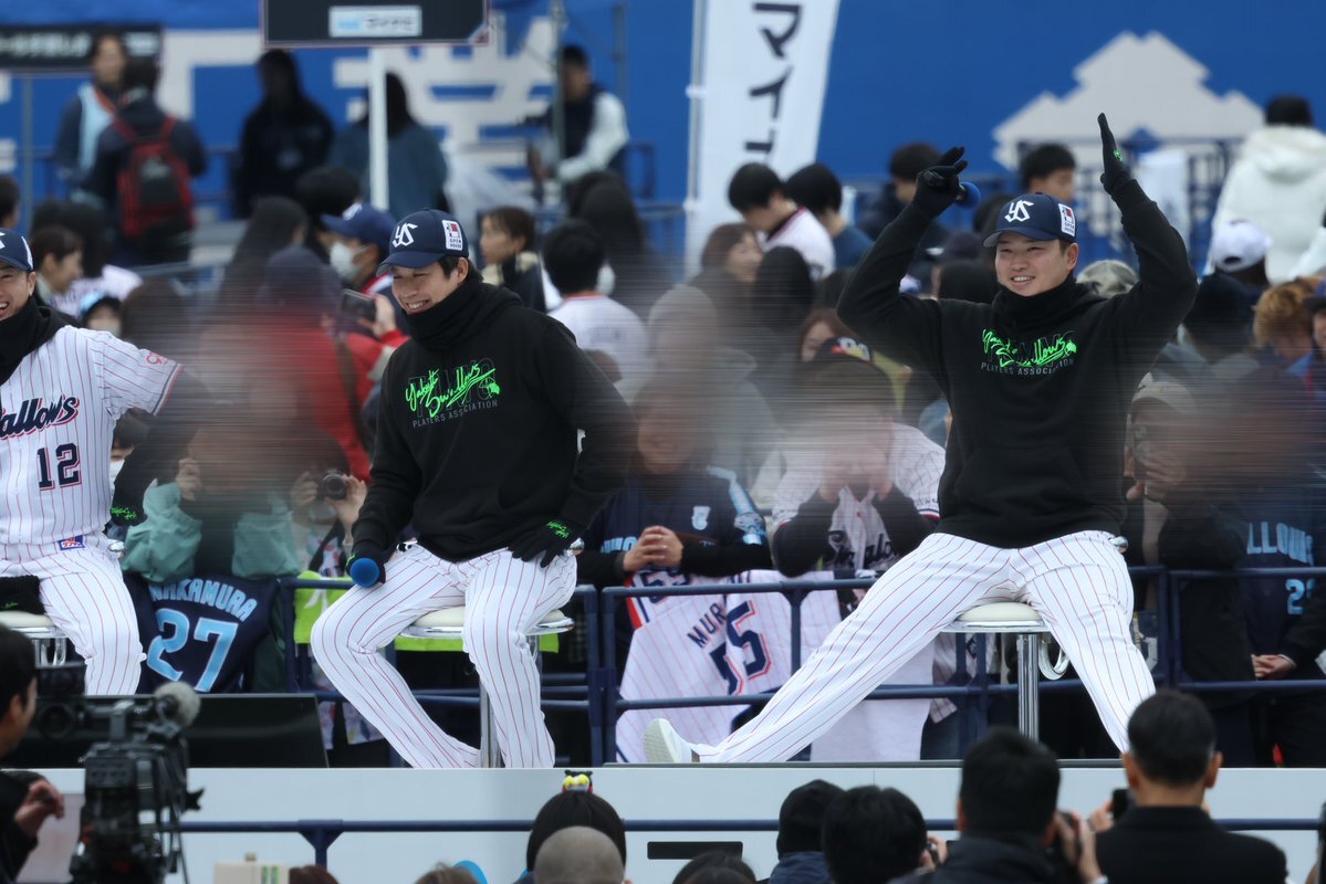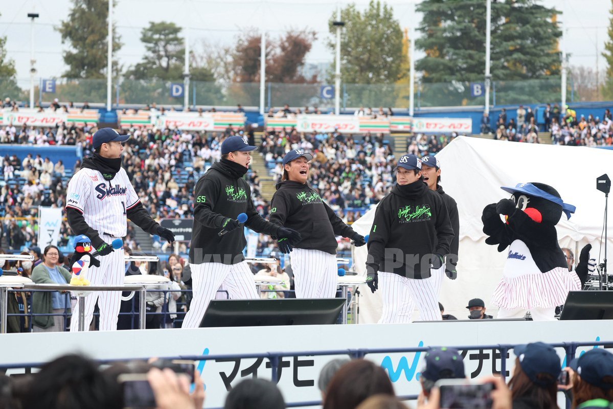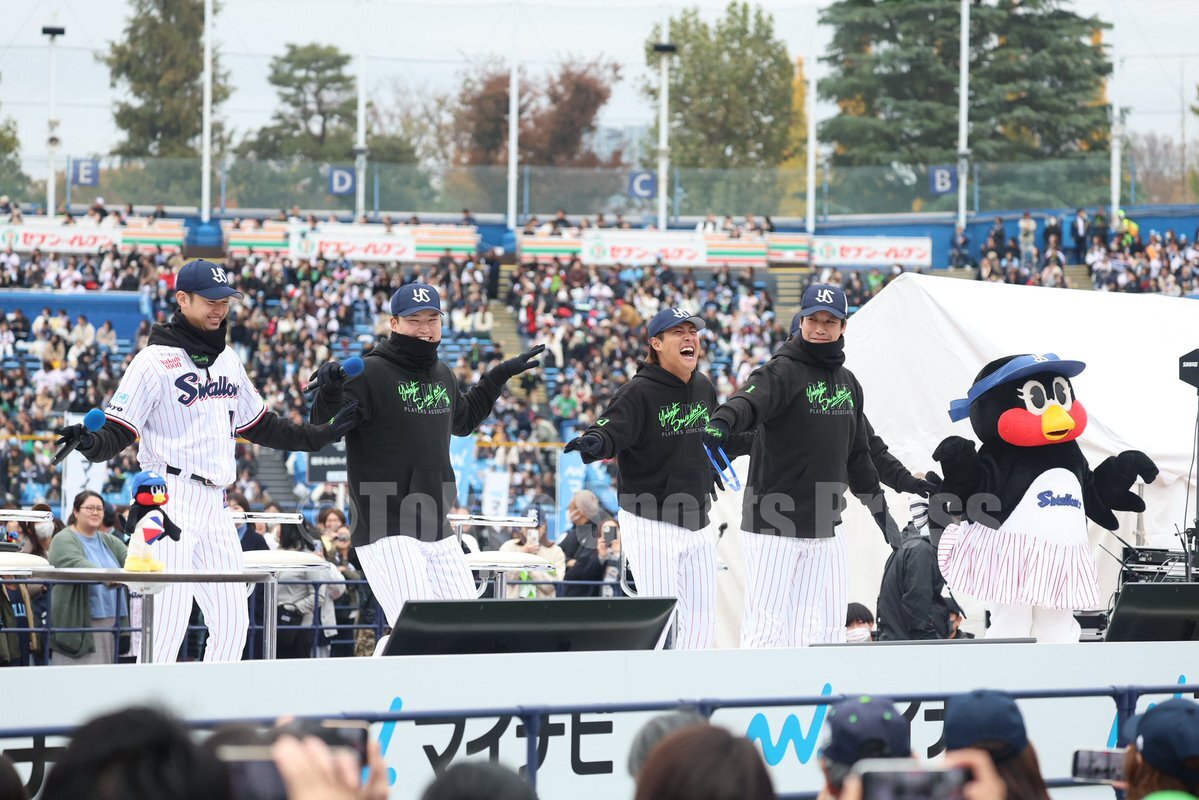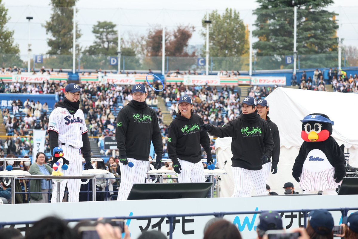 スワローズのファン感謝デーが今日、神宮球場で行われた。 今年もCSのフジテレビONEで生中継。 スワローズのファン感謝デーが生中継されるのは、5年連続。 村上宗隆が1ヶ月ぶりに公の場に姿を見せ、大歓声が響いた。 山田哲人の1000得点表彰式、吉村貢司郎の9、10月の月間MVP表彰式も行われた。