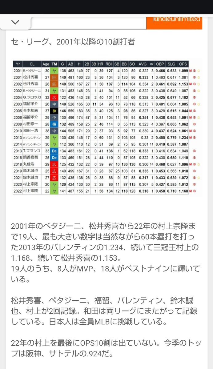 >3.Alc 2025年11月23日 19:35 山田哲人も3回達成してると思います あと吉田正尚も 指摘通りでした🤣 21世紀のOPS「10割(←?)」を 全て調べたのだ‼️ セリーグで10割2度達成したら 必ずメジャーへ行ってるのだ‼️ … #広尾晃 は一切記録や統計に 関わるなよ😠 pic.x.com/6khqZ7uPyz