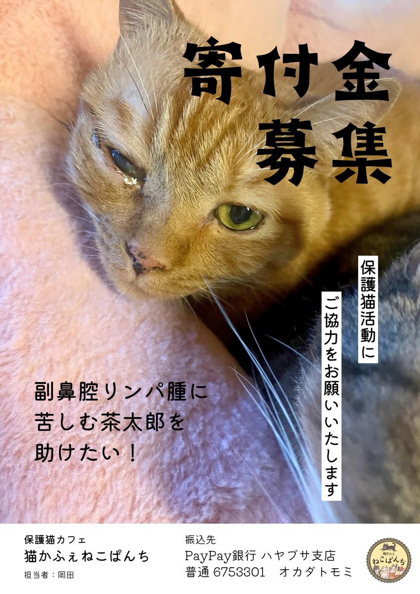 昨晩Xの不具合?でポスト出来ず💦 ねこぱんち本日の営業を13時からとさせて頂きます🙇 茶太郎の細胞診の結果が出ました! リンパ腫の可能性が高いと… 本日抗癌剤を投与します! そして、25日岐阜大学動物病院で診察の予定です🏥 皆様よろしくお願いします🙇 #猫かふぇねこぱんち #保護猫カフェ pic.x.com/79VlbAtrvv
