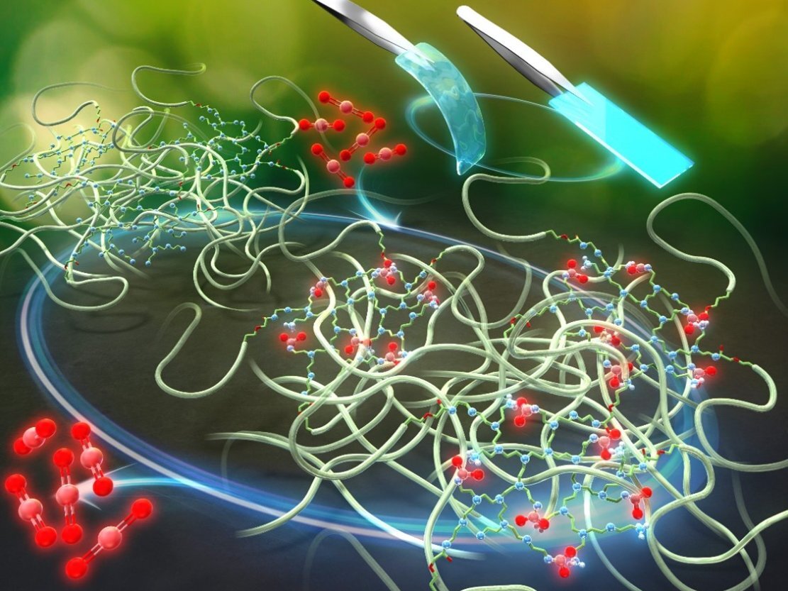 【CO₂で硬化・発光する新素材】 岐阜大学などの研究チームが、CO₂を吸うとゴムが1000倍以上も硬くなり、プラスチックのようになる新素材を開発。しかも加熱すると元の柔らかさに戻る。 pic.x.com/iQYXK8xAJh