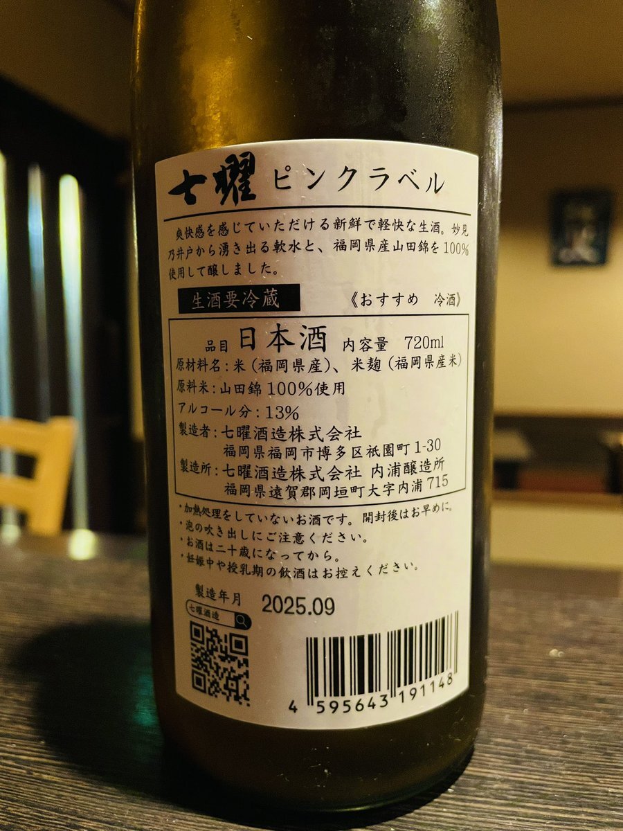 【お知らせ】 10/4(土)は13:00より営業致します。 2022年に岡垣町に誕生した七曜酒造。2022年(令和4年)に岡垣町内浦地区に醸造所(内浦醸造所)を設立し、日本酒造りに適した優れた仕込み水を活用した酒造りを開始しました。 七曜 ピンクラベル 開栓しています。 pic.x.com/zhtbZH1gxN