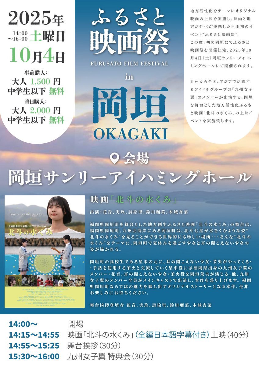 【告知】🗣明日開催 🚰ふるさと映画祭in岡垣⛰️ 🗓10月4日(土)📍岡垣サンリーアイハミングホール ⏰開場/14:00 花音が主演を務め九州女子翼メンバーも出演した映画「北斗の水くみ」の上映会が決定しました🪽 ぜひ一緒に映画を鑑賞しましょう🎥 詳しくは⬇️ itr-kgw.com/2025/09/05/oka…