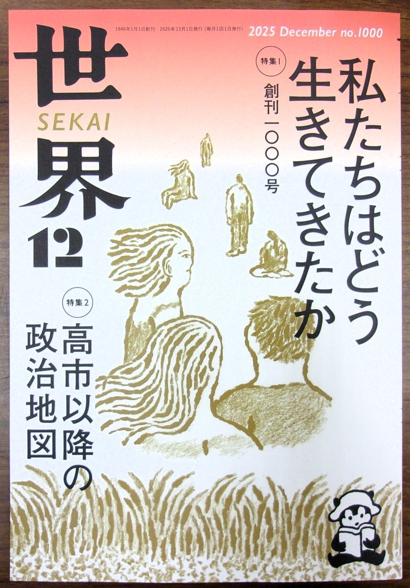 【雑誌発売】 岩波書店 『世界』2025年12月号(No.1000) 特集1:創刊1000号 私たちはどう生きてきたか 特集2:高市以降の政治地図 pic.x.com/PjerRzLmNa