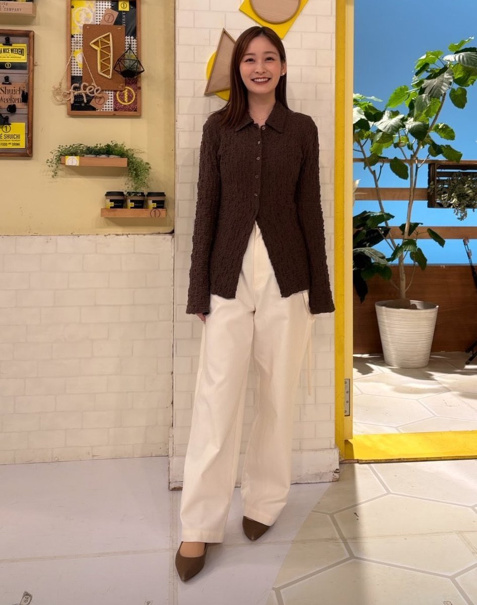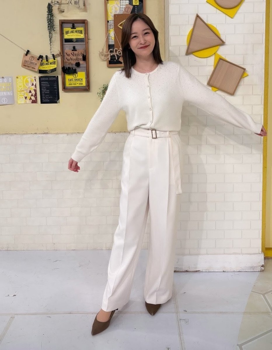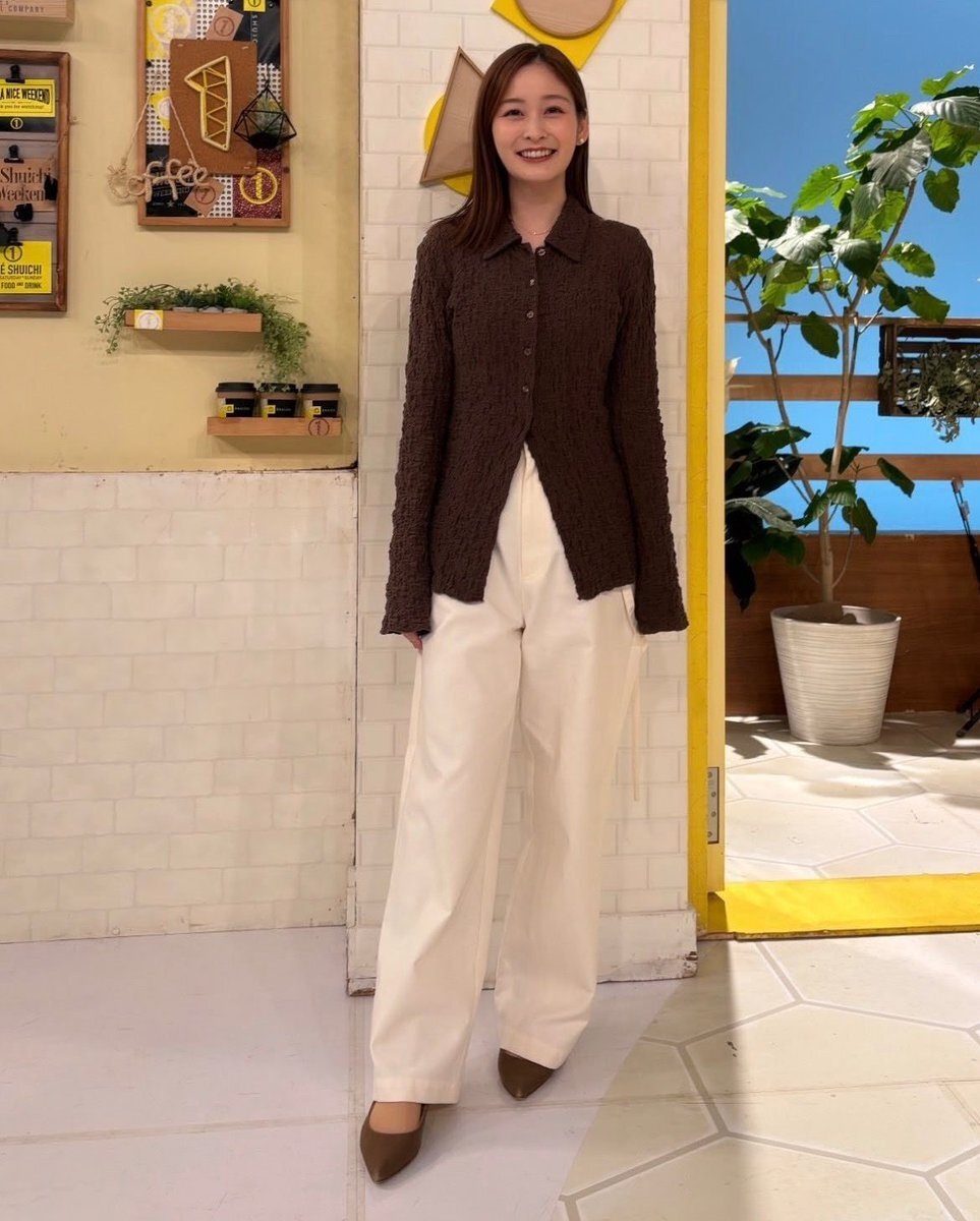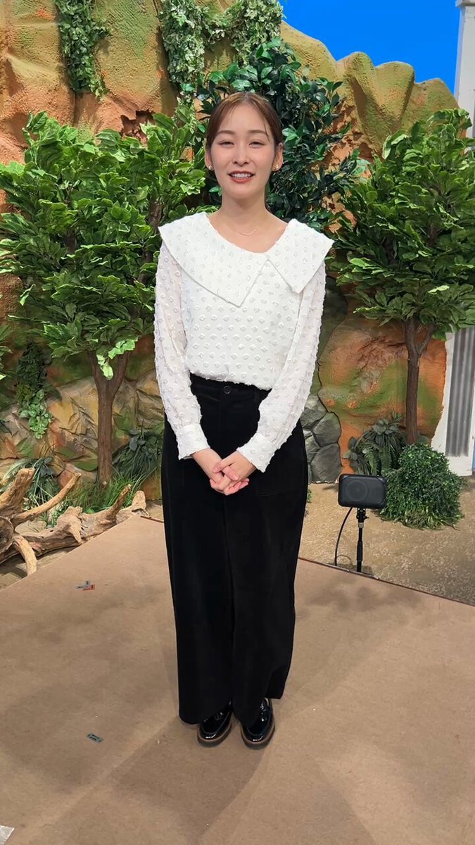 11月3日(月)よる8時〜 #世界まる見え🌎 🖼まさかのアートSP🎨 #岩田アナ 今回の衣装は? ⋰ 立体感のある素材と 襟のデザインがポイントのブラウスに コーデュロイのパンツを合わせて 甘さを抑えました🤍🖤 ⋱ #grosse #LaboutiqueBonBon #LOUNIE