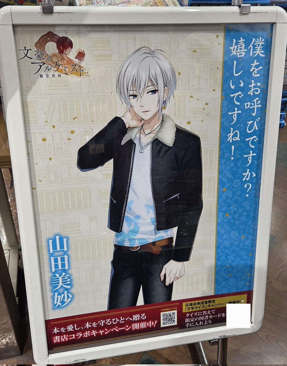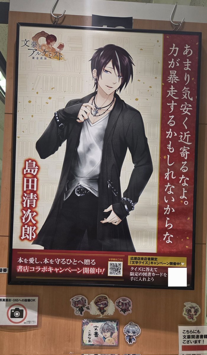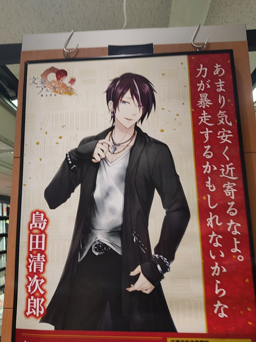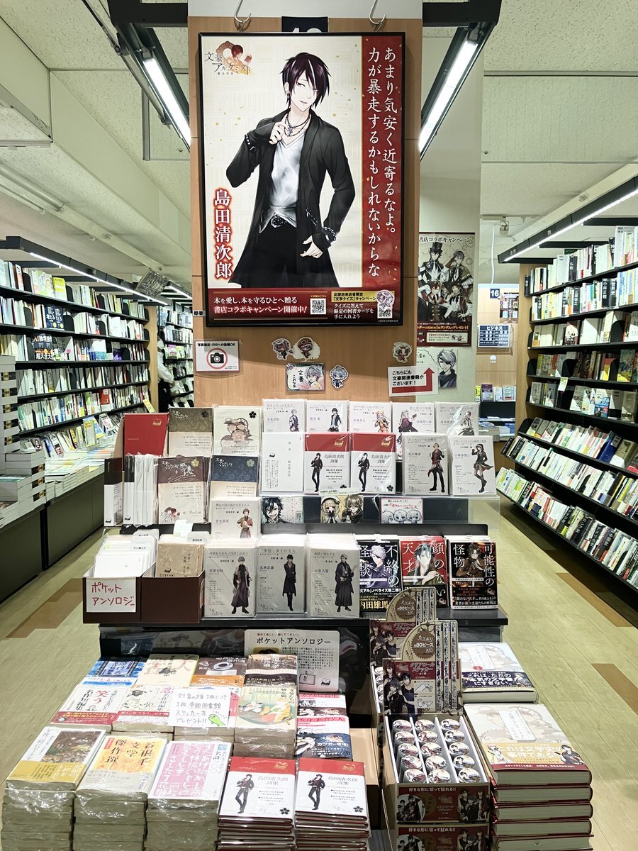 #文豪とアルケミスト 書店コラボ、本日より開催! 当店では精神界の帝王・島田清次郎先生のポスターを展示します✨ 1,000円ごとのご購入でオリジナルカレンダー、対象の文庫のご購入で帝國図書館ステッカーもプレゼント🎁 #文アルロールステッカー も販売しております #文アル #文アル書店調査 x.com/honhikidashi/s…