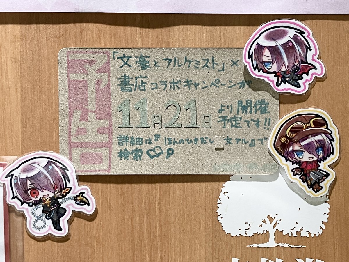 11月21日より #文豪とアルケミスト ×ほんのひきだしのコラボが開始します ミニキャラの島田清次郎先生のポップをいろいろご用意しました! 文豪コーナーにおりますので、見に来てくださいね✨ #文アル書店調査 #文アル #いろいろな島清 pic.x.com/eCgkzaPpeU x.com/bunichigaya/st…
