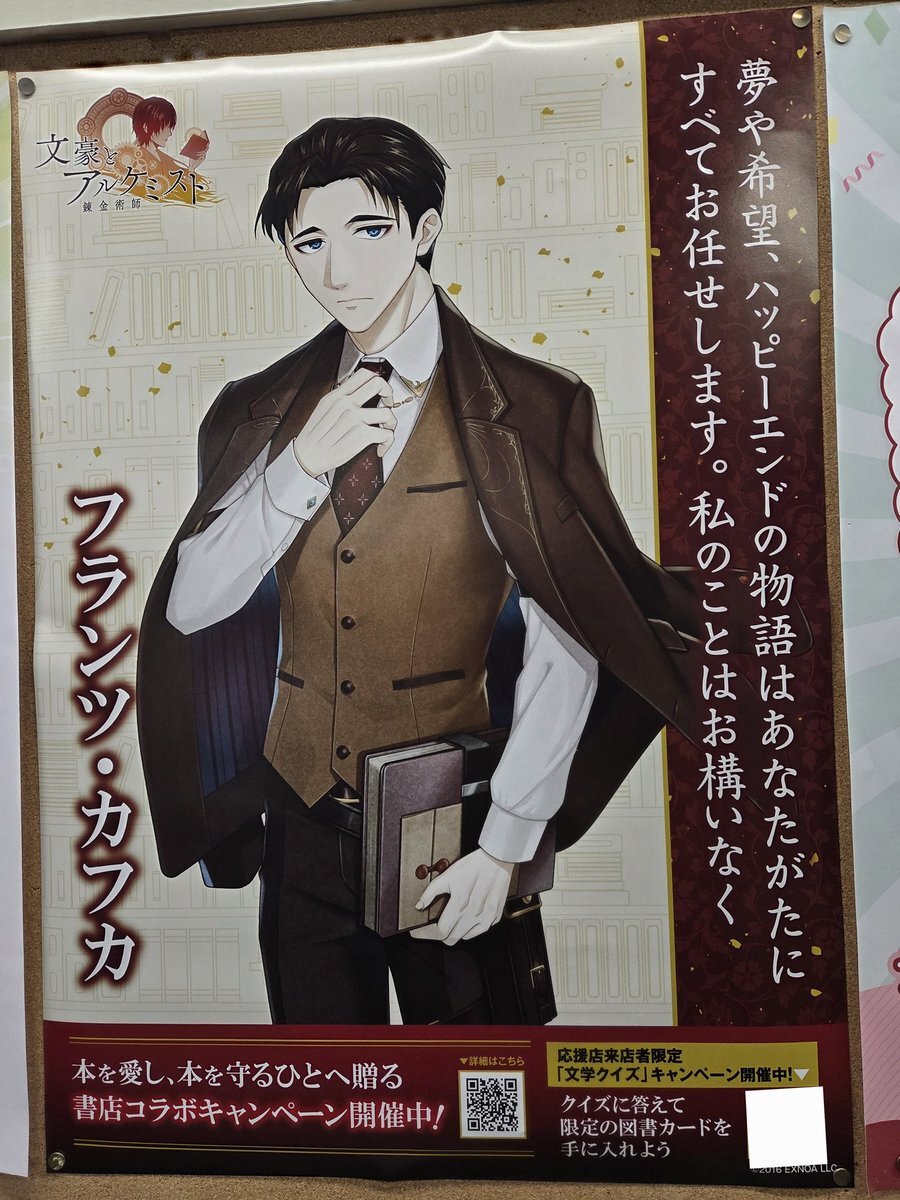 #文豪とアルケミスト 書店コラボ、本日より開催! 当店では精神界の帝王・島田清次郎先生のポスターを展示します✨ 1,000円ごとのご購入でオリジナルカレンダー、対象の文庫のご購入で帝國図書館ステッカーもプレゼント🎁 #文アルロールステッカー も販売しております #文アル #文アル書店調査 pic.x.com/tM0sM2ph7u x.com/honhikidashi/s…
