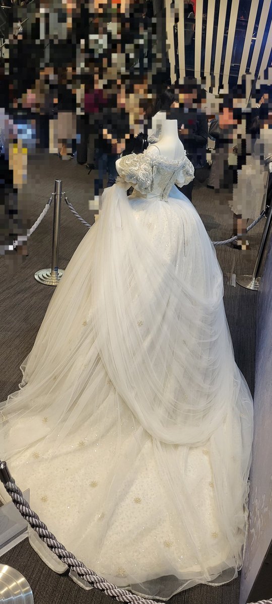 行列が噂のキャストボードは以外と回転が速いし帝劇のMR!の時よりかなり早くたどり着いた気がした ドレスの展示も思いの外撮りやすくて、あまり撮っている人がいなかったけど私は後ろの美しさがとても気に入った 幕間にトイレに行かない人ならドレスもグッズ売場も断然空いているので幕間がオススメ pic.x.com/HVrjlQlCF1