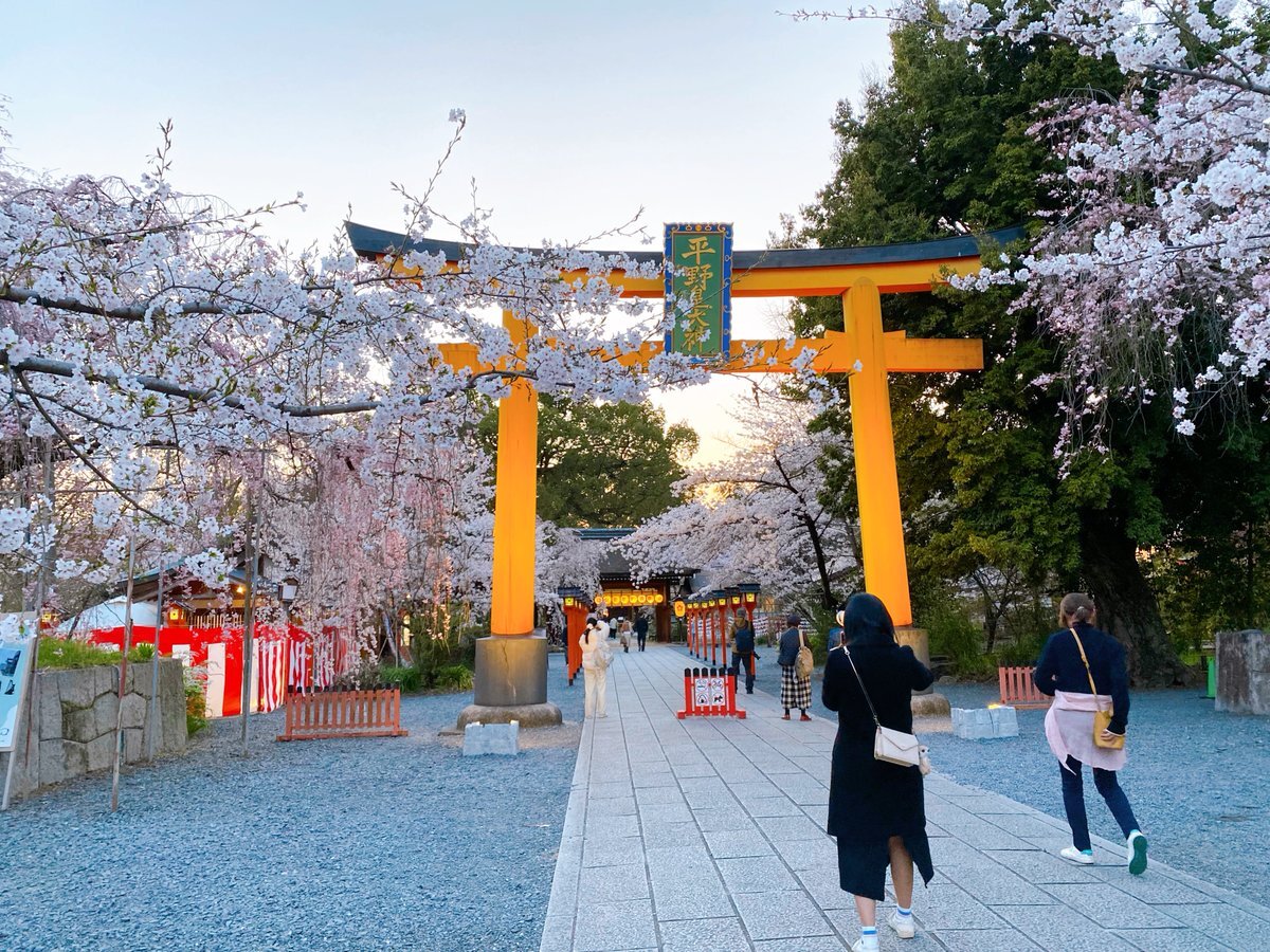 #平野神社 (京都市北区) 平安京遷都の際に平城京から遷座された格式の高い神社⛩ 二殿一体の本殿が2棟並ぶ平野造 愛好家にはたまらない光景です✨ 桜の名所としても知られ、境内には60種400本🌸 ライトアップされた桜を眺めながら花見茶屋ですき焼き 春の京都の醍醐味です ( ^ω^ ) pic.x.com/416I2dITRo