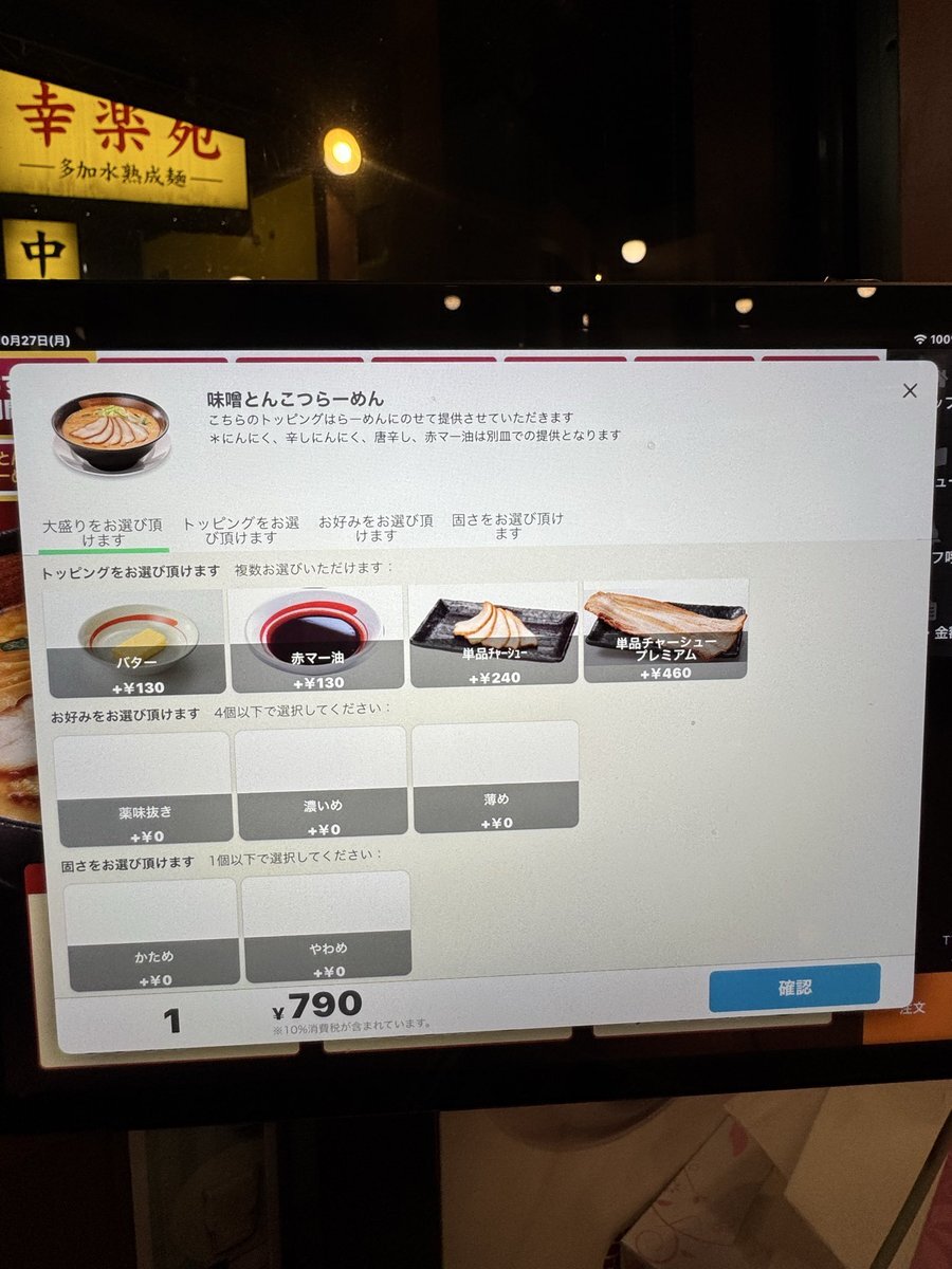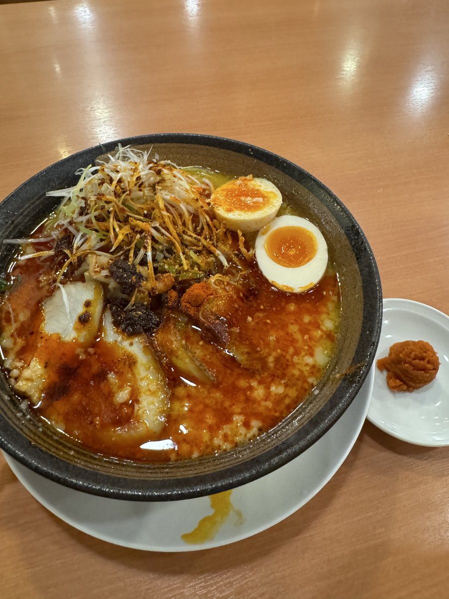 幸楽苑 和光新倉店 味噌とんこつらーめん(かため、濃いめ) TP辛しにんにく、唐辛子、味玉、千切りねぎ、赤マー油 休肝日のコインランドリー待ち!! 味の濃さと麺の硬さがタブレットで選べるのは良い✨ 辛み足しすぎて味噌とんこつ感が…💦 pic.x.com/MpnQDSxzgu