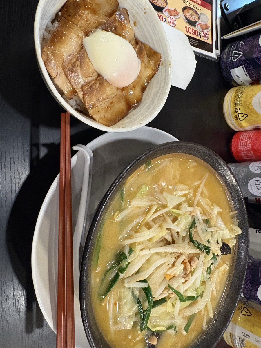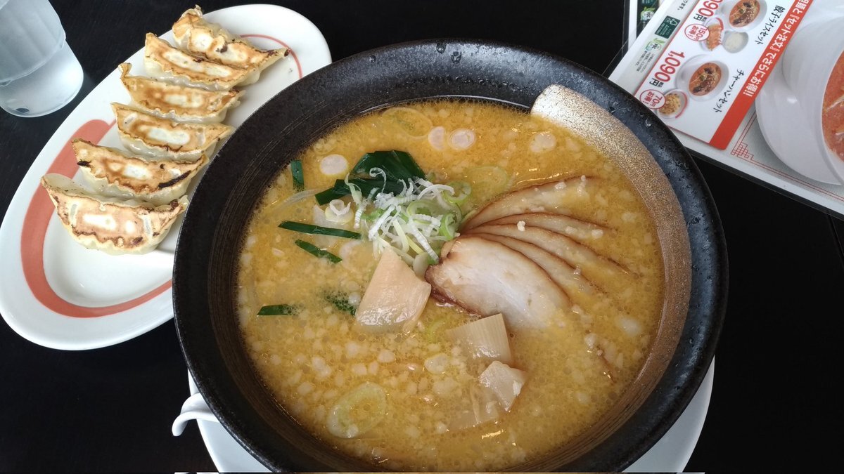 夜メッシ😋 幸楽苑のみそタンメン🍜 最近たまに食べたくなるやつ😋🍜♪ 熱々でボリューム満点で飽きずに最後まで食べれちゃう。 🥟餃子はシェア👍 お腹いっぱい!ご馳走様でした(:D)┓ pic.x.com/kqy17tZ57M