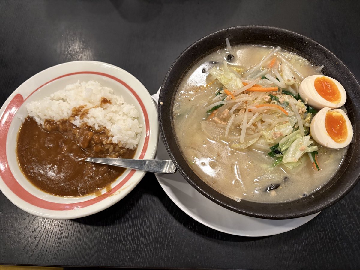 今日の夜は、幸楽苑 茨島店(秋田市)で「塩野菜たんめん」「味玉」「カレーライスセット」をいただきました。 今日もおいしいものをおいしくいただけることに感謝🙏 ごちそうさまでした。 #幸楽苑 #塩野菜たんめん #味玉 #カレーライスセット pic.x.com/UDQXwApROW