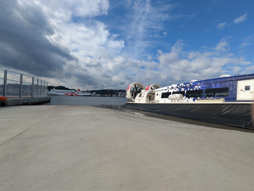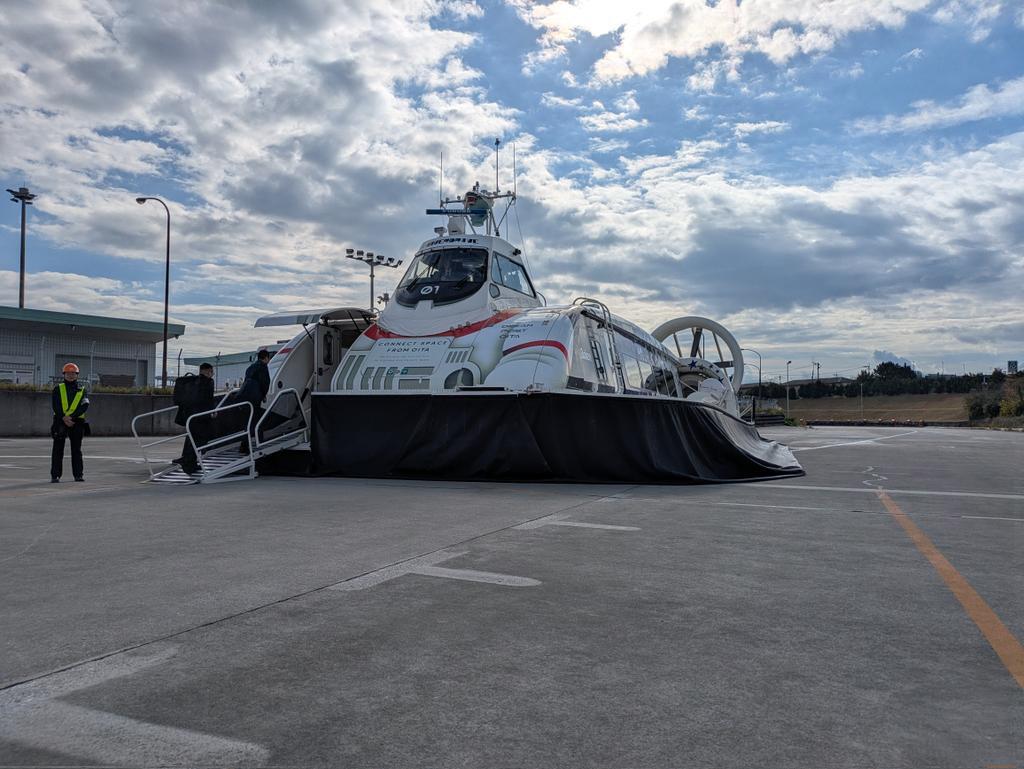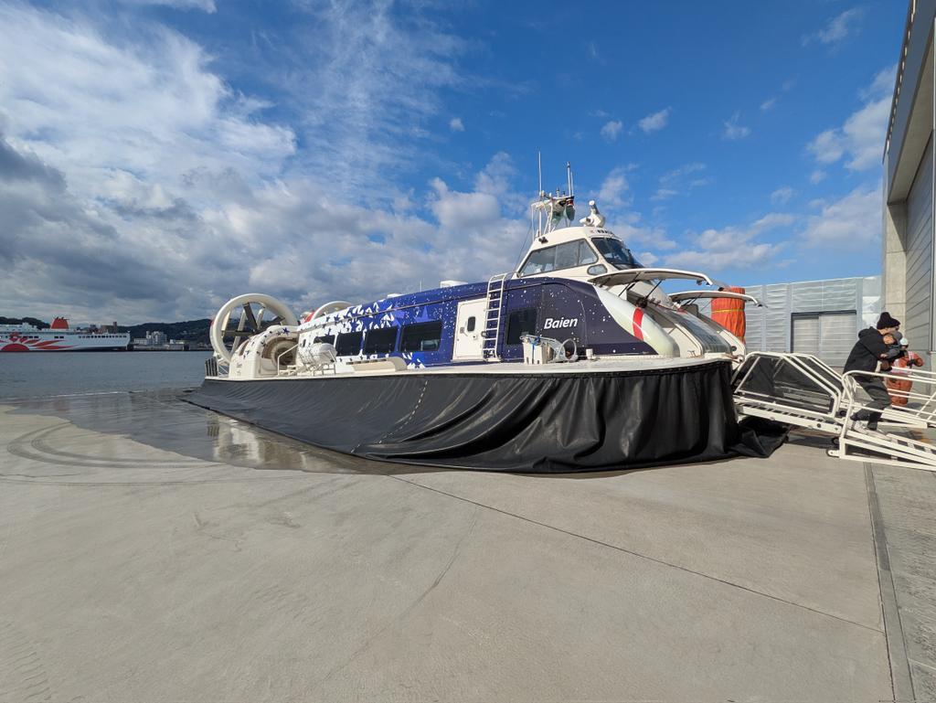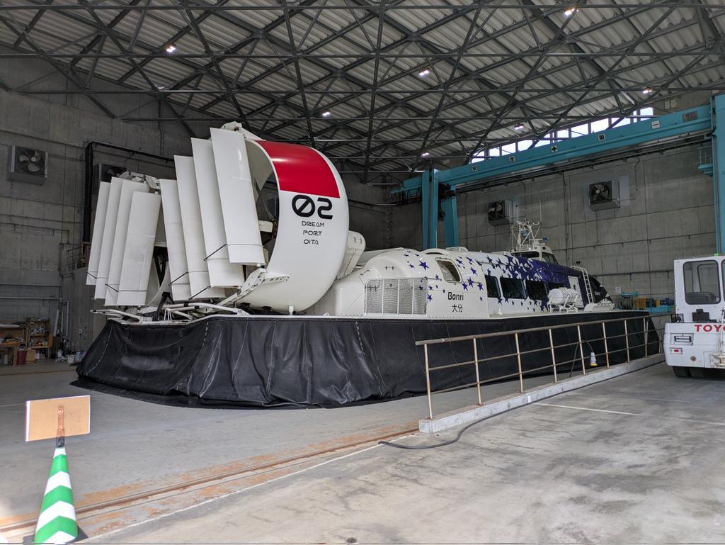 大分空港から大分までフォバークラフトを利用。価格は2,500円と高いものの所要時間はエアライナー1時間強に対し35分と格段に早い。別府湾を斜めに横断するため距離が短いのである。浮いているため陸地↔️海上の繋ぎ目や海上での振動も割と少なく引き波も立てないのが特徴。強風には弱いかもしれない。 pic.x.com/qdwP0E3ulQ