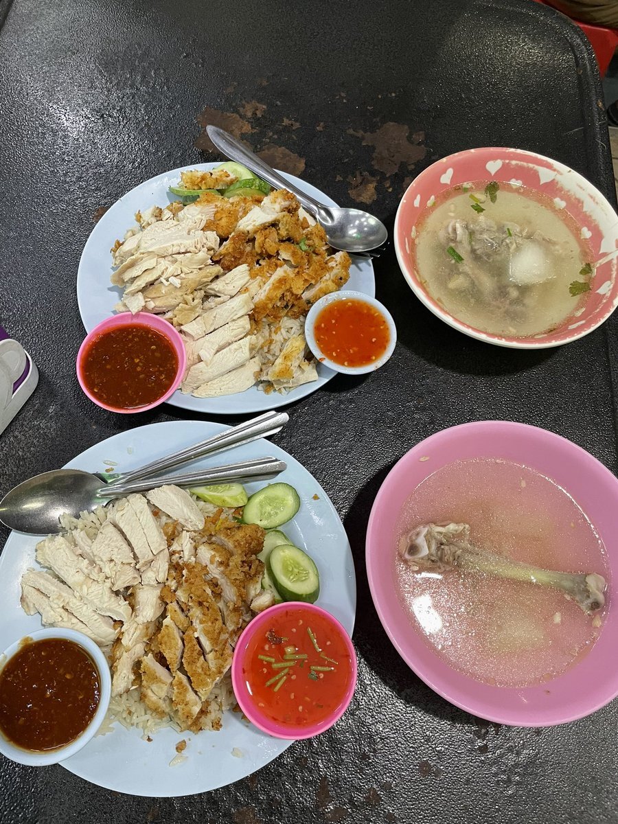 今日はタイ🇹🇭パタヤ23℃でした。 そんな中海で泳いで強風に晒されたら寒いっちゅーのよ🥶 遅くなったけど、晩御飯は『まんゆうさん』おススメの「ウサナチキンライス」 屋台と簡易テーブル。 激ウマ過ぎて😍完食! pic.x.com/S2LyQ39a0q