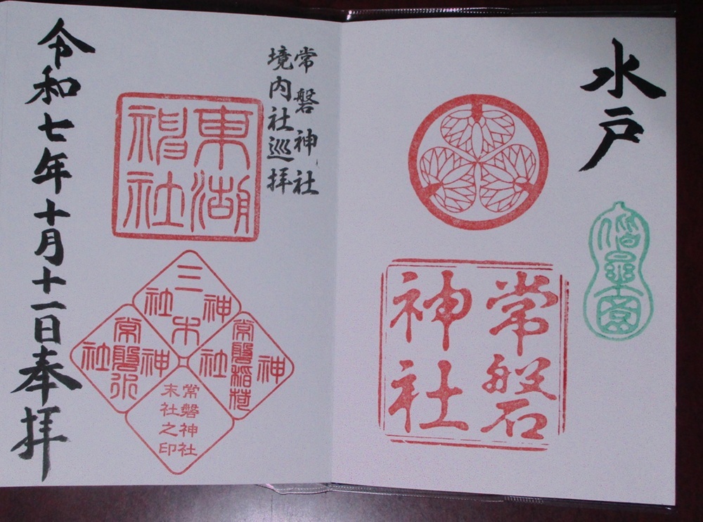 本日の御朱印その204 ・ 常磐神社 茨城県水戸市常磐町一丁目 令和7年10月11日 ・ 6年ぶり3回目の参拝 偕楽園横にあります。 黄門さま徳川光圀公と偕楽園を作った徳川斉昭公を奉った神社です。 ・ 御朱印は本宮と摂社東湖神社と末社三木神社他の分を書いて頂きました。 ・ ・ #御朱印  #常磐神社 pic.x.com/gQNzkTJgaH