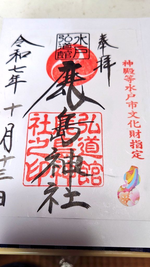 昨日、待ち時間に御朱印活動 弘道館鹿島神社!こちらは水戸藩九代藩主徳川斉昭公創建された神社⛩️です 写真撮り忘れたのでパンフレットより pic.x.com/T2cZ9lMePX