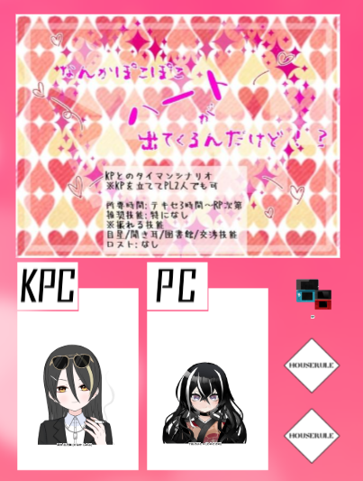 【CoC6】なんかぽこぽこハートが出てくるんだけど!? KP/KPC:考える脳筋/田中 志乃舞(ロトあだ極道) PL/PC:しゃもまさん/十前乃ひとつさん(ロトあだ落語家) シナリオクリア。 「その動画、消せ―!!」 pic.x.com/VoguJTXjpR