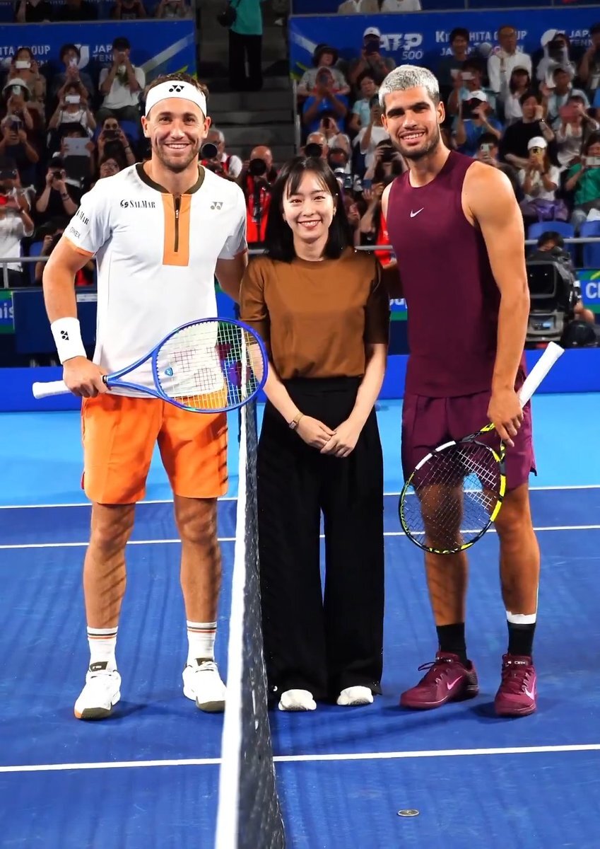 🎾#木下グループジャパンオープン🎾 シングルス準決勝💥  ̄ ̄ ̄ ̄ ̄ ̄ ̄ ̄ ̄ #カルロス・アルカラス 🆚 #カスパー・ルード コイントスは #石川佳純 さんです🏓💛 #木下JOテニス #kinoshitajotennis