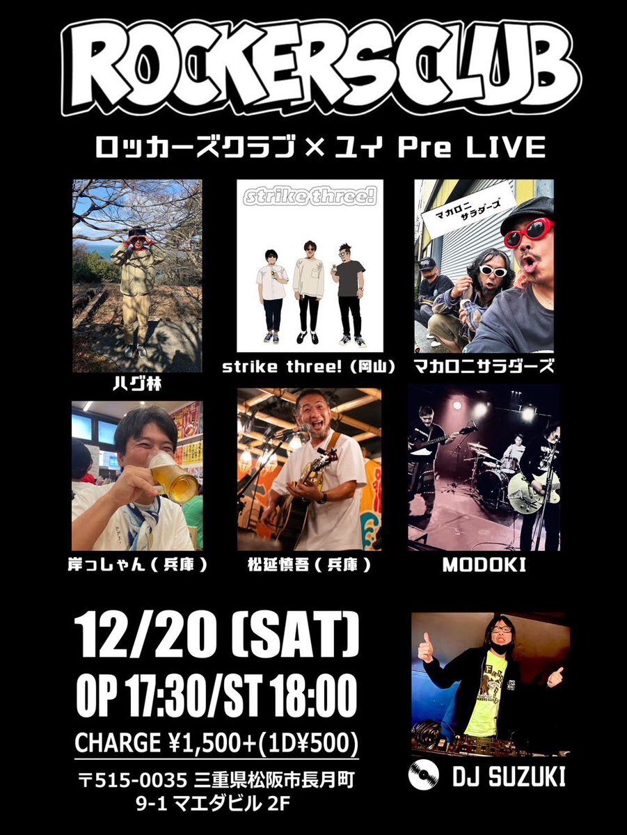 ✯✯詳細解禁✯✯ 2025.12.20 SAT ロッカーズクラブ×ユイ presents at.松阪ROCKERS CLUB OPEN 17:30/START 18:00 CHARGE ¥1,500+1D¥500 【出演】 岸っしゃん(兵庫) strike three !(岡山) ハグ林 マカロニサラダーズ 松延慎吾(兵庫) MODOKI 【DJ】 SUZUKI ぜひぜひ遊びに来てください🍻✨😊 pic.x.com/LFtoSDG0zR x.com/yuuui1741fo232…
