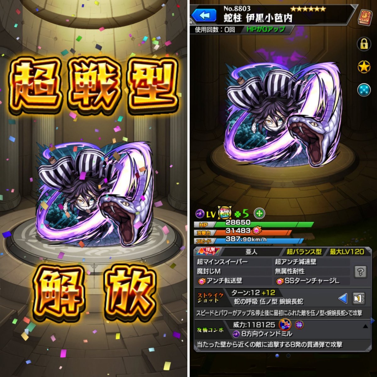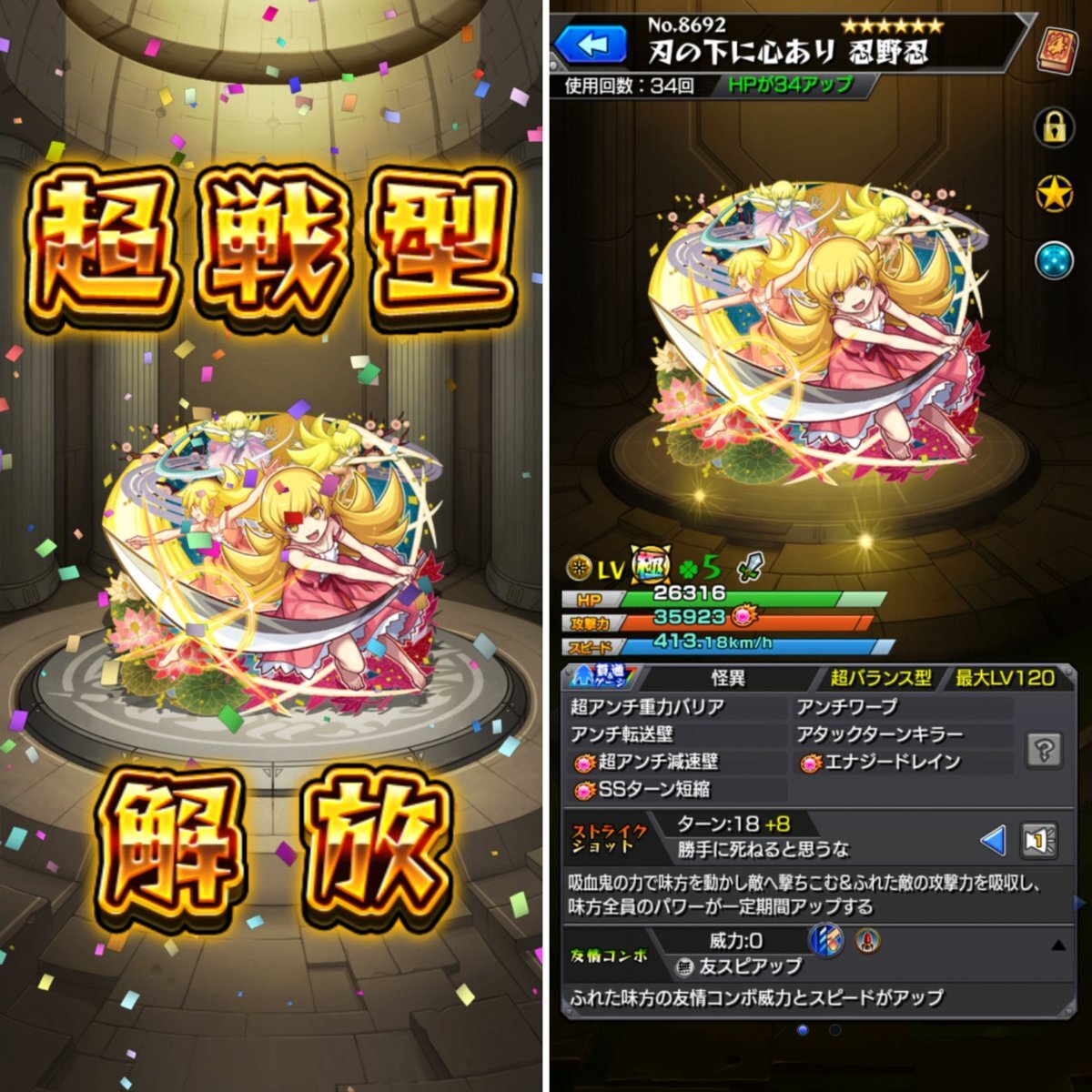 伊黒小芭内、不死川実弥、羽川翼、忍野忍、超戦型解放! #モンスト #戦型の書 #超戦型解放 pic.x.com/WjV04OUTRJ
