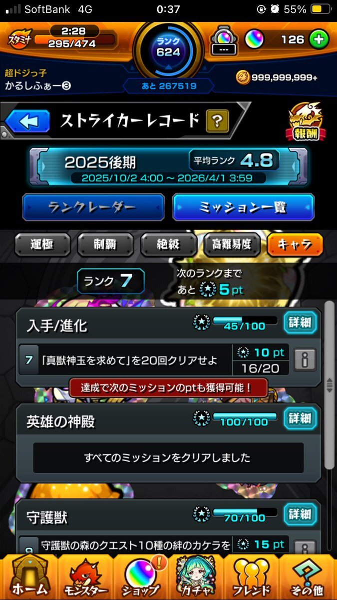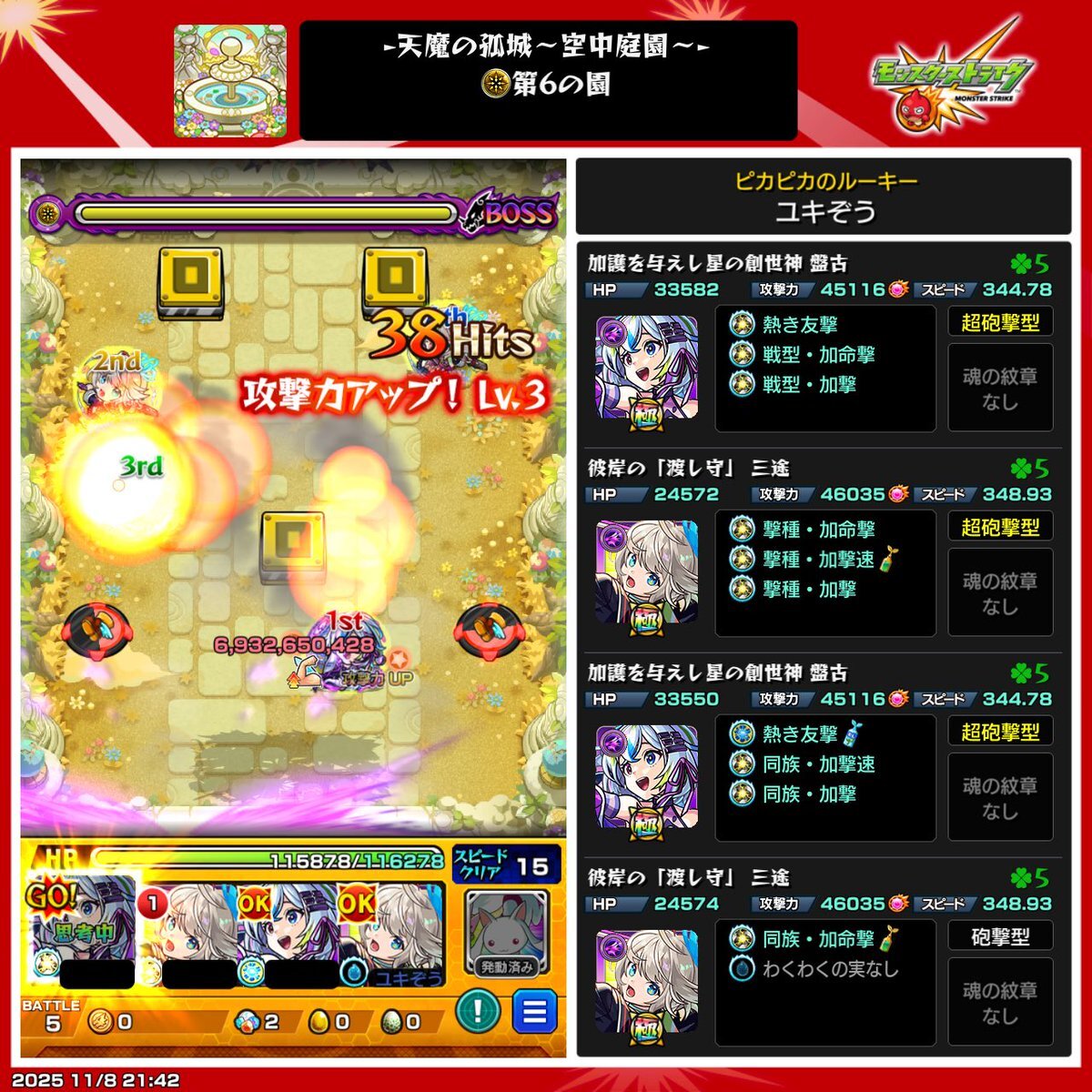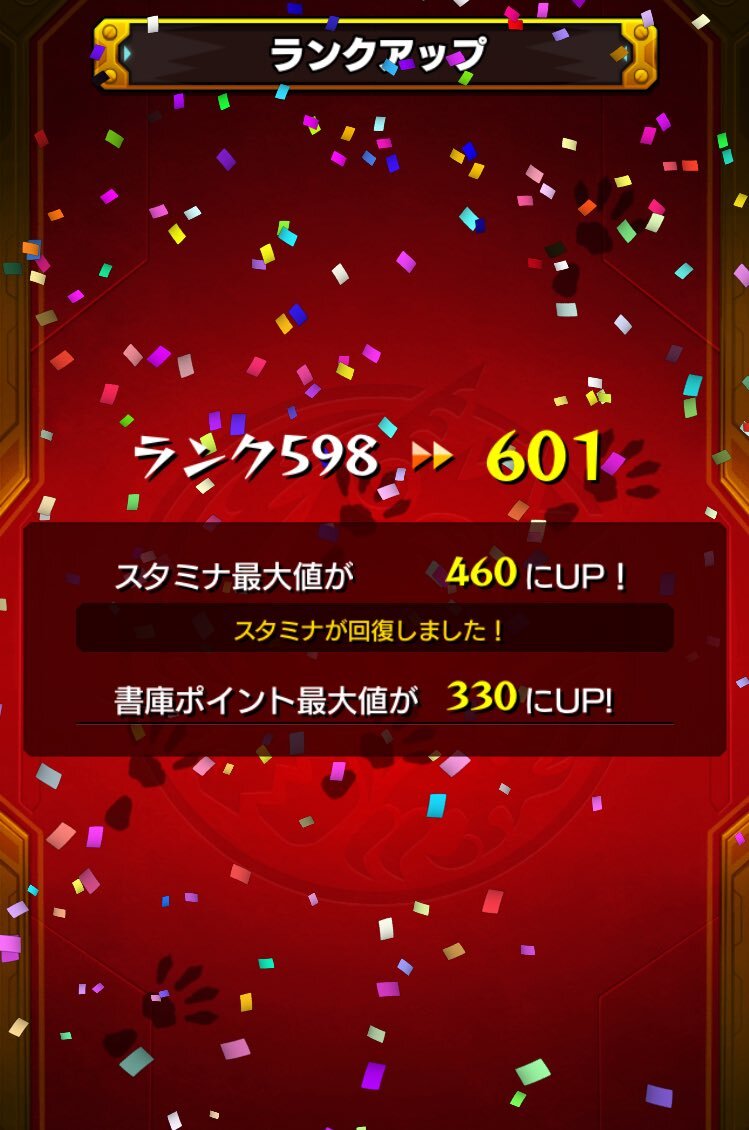 11/8 手こずった空中庭園6 やっとクリア!(師匠の… 戦型の書を…ください… ケイうさも合間にちょこちょこやってランク600達成!\(^o^)/ まだ期間あるから700めざしちゃおうかな! 今日もありがとうです🍀 #モンスト pic.x.com/TR3cHmHtqr