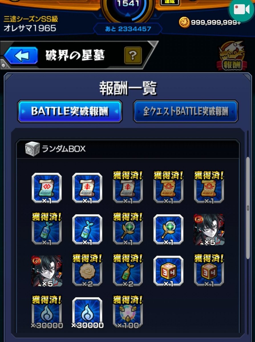 破界の星墓、今月は取り敢えず、報酬はここまでにしとこうかな? まだ確保出来る余地はあるけど無理すると魂気や戦型の書やメダルがほとんど無くなってしまう。 pic.x.com/uPNY2V9QxE