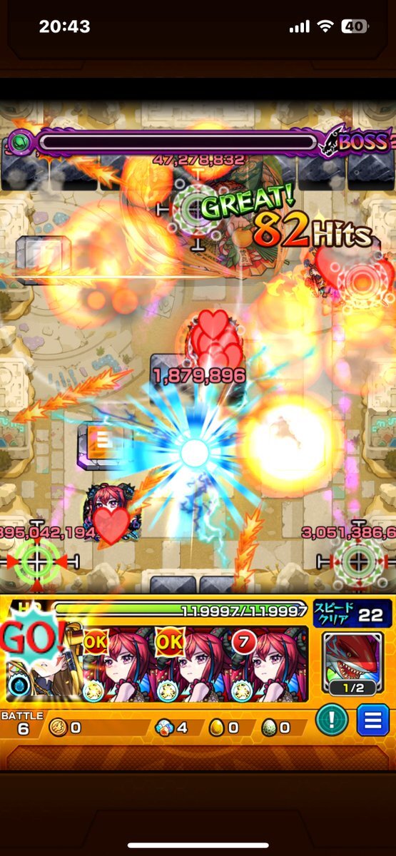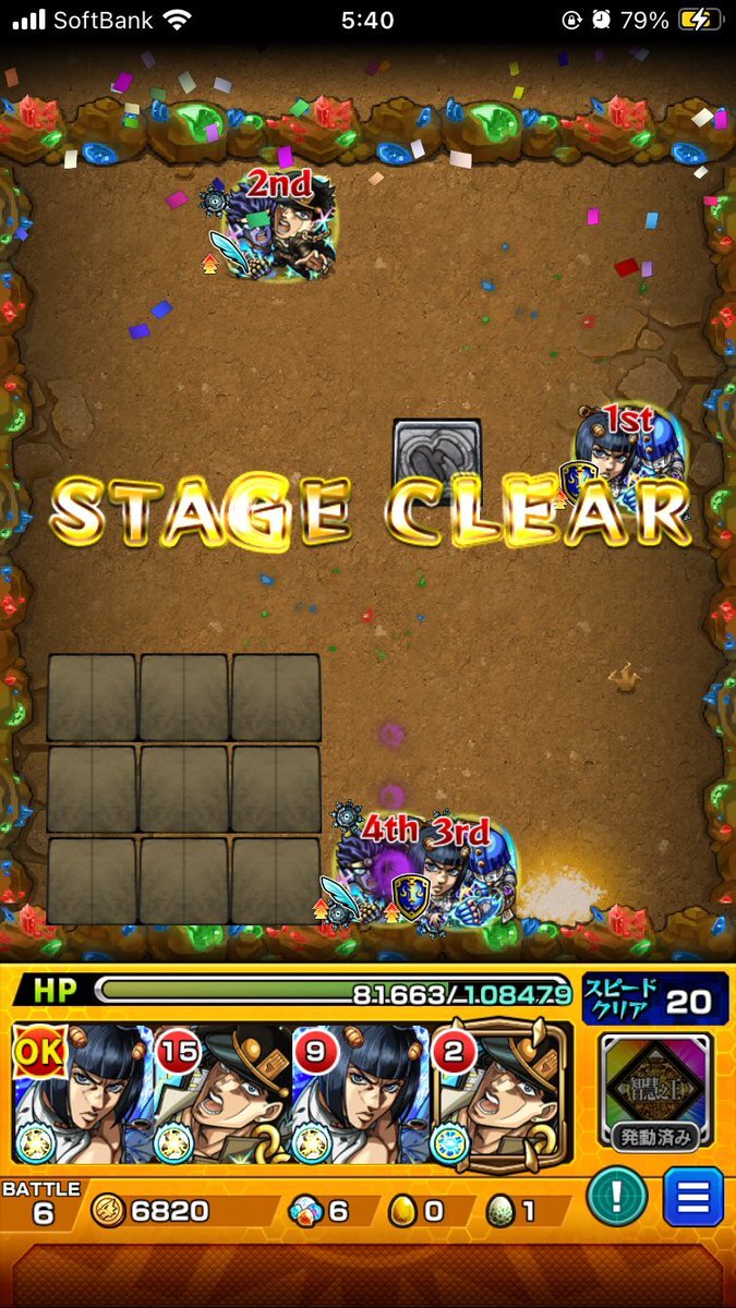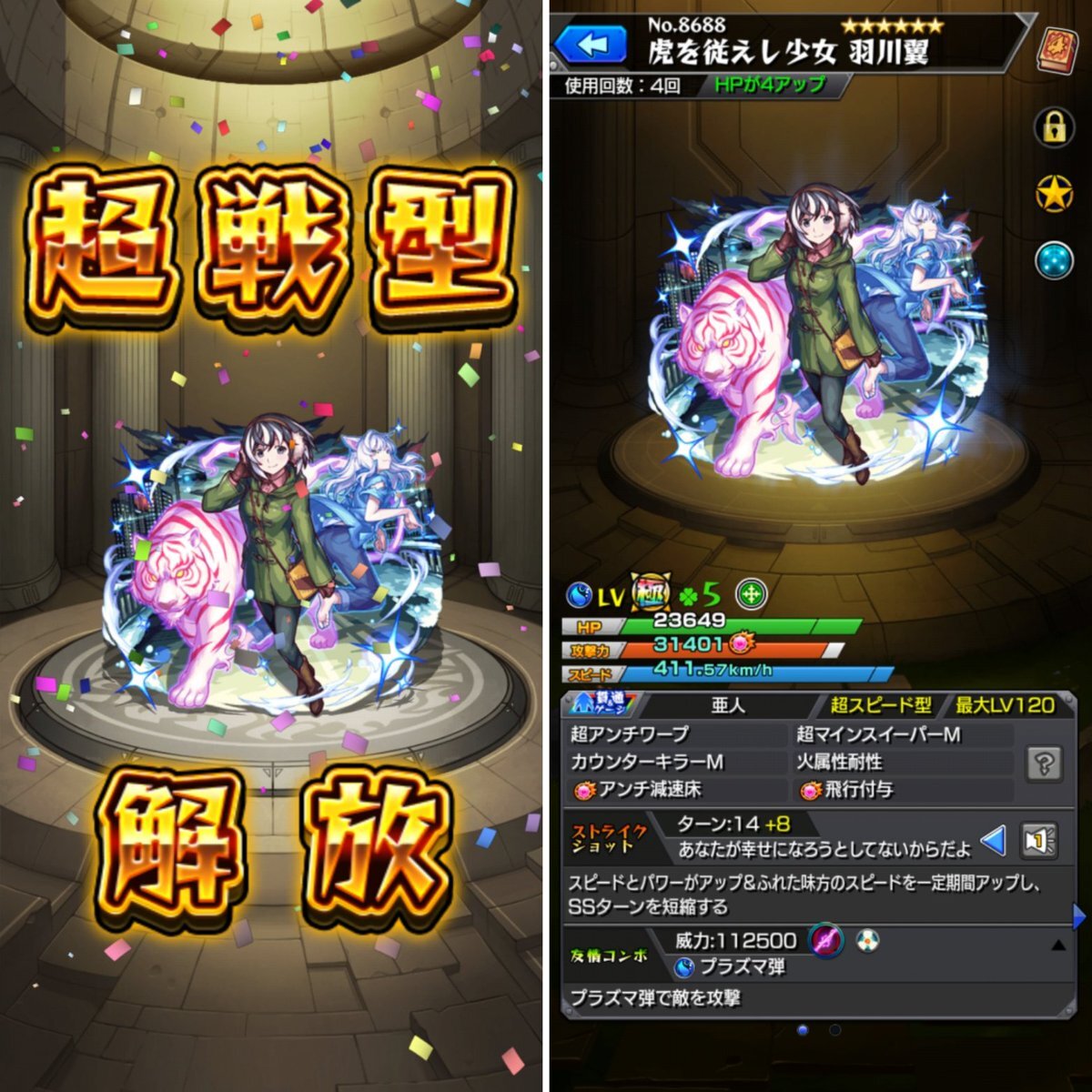 返信先:@_salmon_animeおめでとうございます! hp半分切るとドキドキするの分かります! もう一体のジョーカーを超バラにすればハートとった時の回復量も増えると思うので戦型の書が余ってたら使っちゃっても良いと思います〜