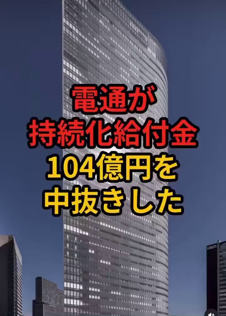 返信先:@dol_editors電通が持続化給付金 104億円を中抜きしたお金は何処へ行ったんや! x.com/hide_Q_/status…