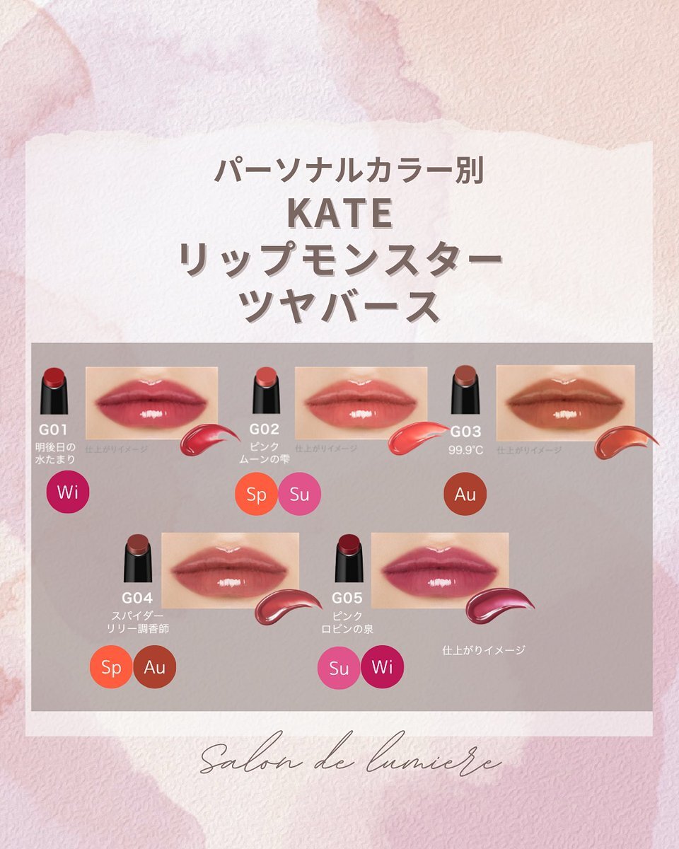 KATEのリップモンスター ツヤバースを パーソナルカラー別に紹介いたします! 落ちない口紅で大人気のリップモンスターの新タイプ、 とろツヤモンスター👾 とろんとバームのような肉厚なツヤ感で、 唇の縦皺をカバーしてくれます💄 ぜひチェックしてみてくださいね♡ pic.x.com/DDMf1Us1cJ