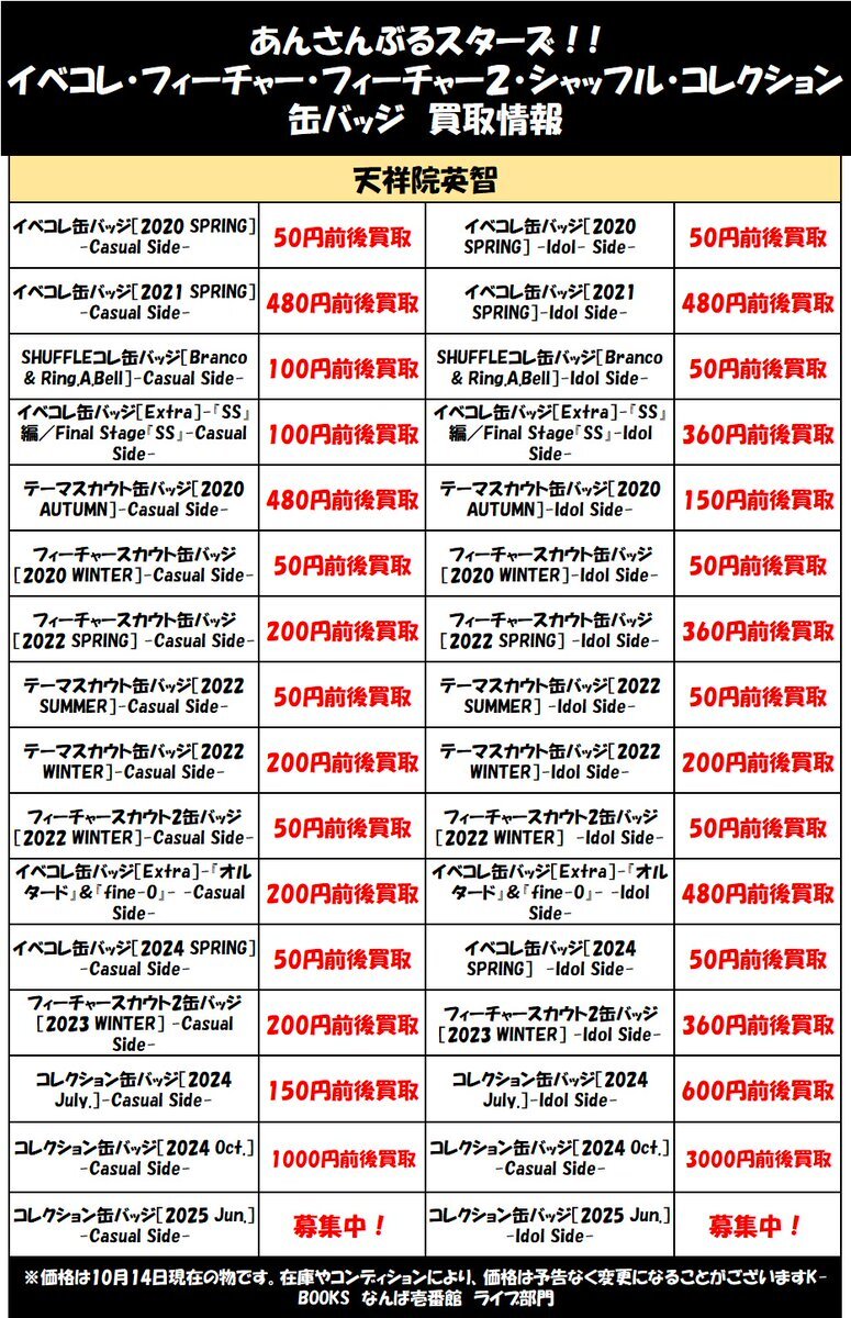【買取情報】 「あんさんぶるスターズ」 fine ♢イベコレ ♢テーマ ♢フィーチャー/フィーチャー2 ♢SHUFFLE ♢コレクション 買取情報を更新しました! 皆様のお持ち込みをお待ちしております! #kbooks あんスタ 天祥院英智 日々樹渉 姫宮桃李 伏見弓弦 スタプロ なんば pic.x.com/cdZWlBlVoy