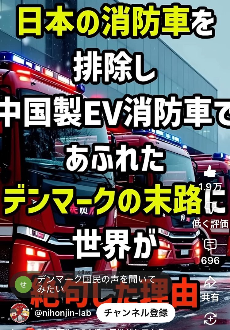 ㊗️100万再生!日本の消防車を排除し中国製EV消防車であふれたデンマークの末路に世界が絶句した理由 youtube.com/shorts/UG6Xa8x… @YouTubeより パックン何か反論できるか?