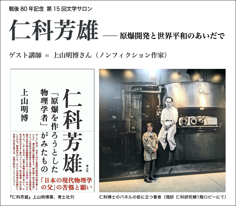 「仁科芳雄 ─ 原爆開発と世界平和のあいだで」と題する講演を麹町の日本文藝家協会で10月21日(火)16時からおこないます。 仁科芳雄は湯川秀樹の師で、戦後いち早く〝核廃絶〟を訴えた科学者です。ぜひご参加下さい。イベント情報と申込みは、下記の日本文藝家協会hpで。 ▶ bungeika.or.jp/event/4931/ pic.x.com/eb4NvOE20g