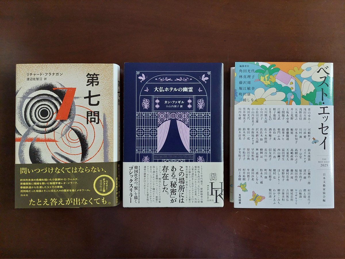 #買った本 リチャード・フラナガン/第七問/渡辺佐智江 訳/白水社 カン・ファギル/大仏ホテルの幽霊/小山内園子 訳/白水社エクス・リブリス 日本文藝家協会編/ベスト・エッセイ2025/光村図書 『奥のほそ道』で圧倒されたフラナガンの新刊『第七問』。追いかけたくなる作家がまた現れてしまった。1/n→ pic.x.com/CKgdMN3gqr