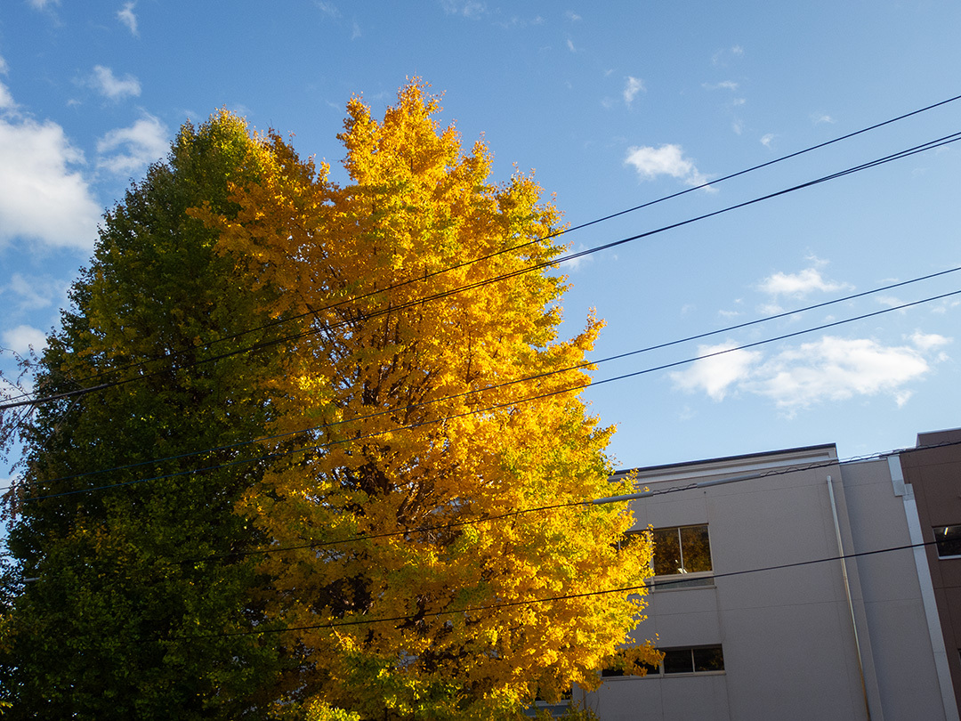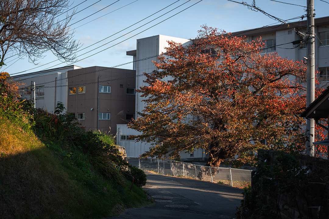 病院前から路地に入って国道から離れる。路地はだいたい昔のままの様子。ただ火災があった場所で昔のままとはいかないところもある。中学校裏手のイチョウは大分色づいている一方で桜はまだ落葉していない。#日立市 pic.x.com/ZaAPkQIC1t