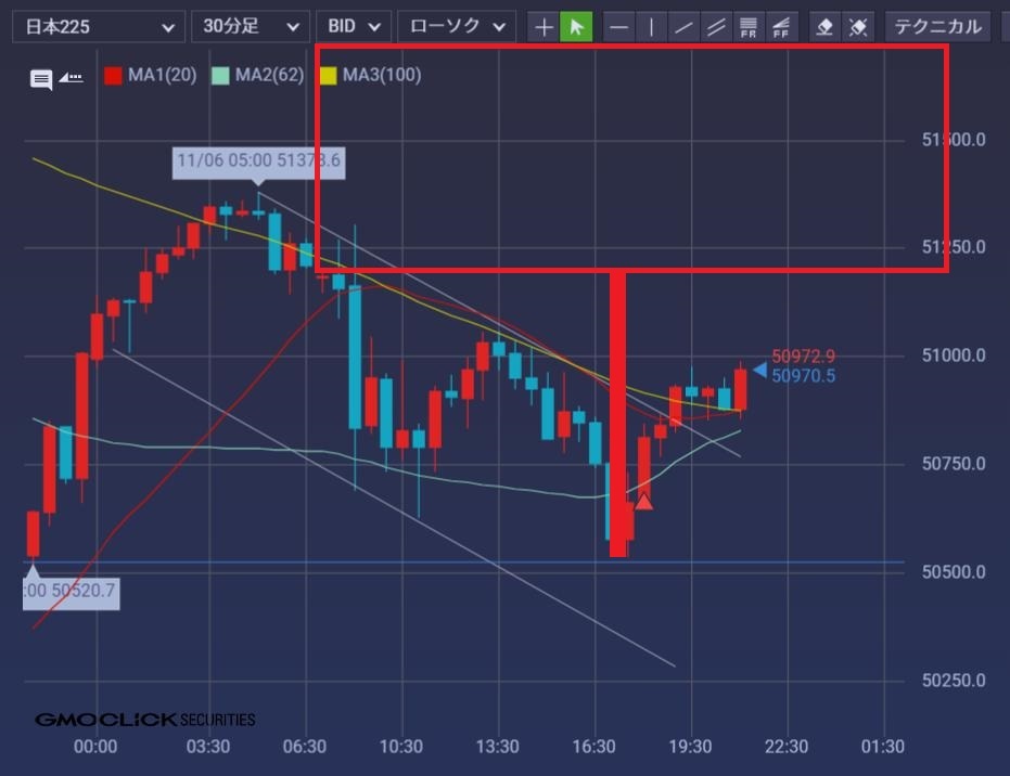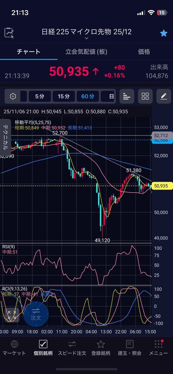 日経先物マイクロ📊 50900円ショート→50930円ロスカット😑まだ水色🩵下降トレンドラインを⬆️に抜けてないですが、びびってロスカットしちゃいました😇 pic.x.com/khobREB7jZ x.com/sakura_a1116/s…