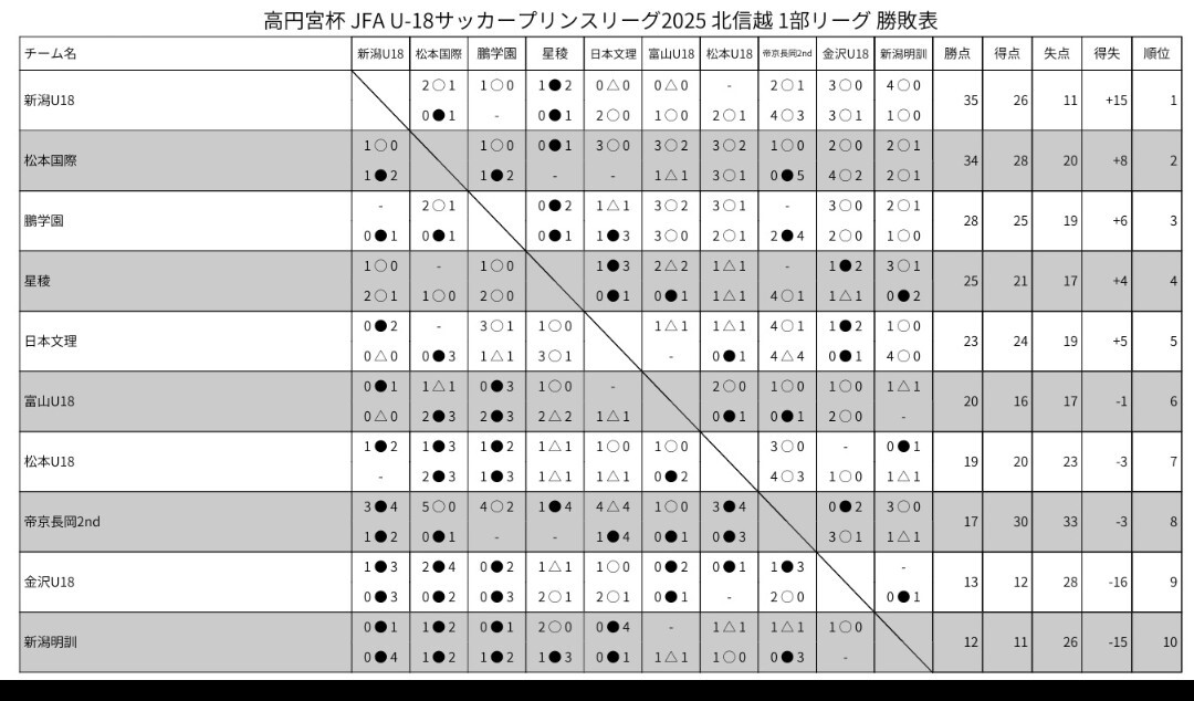 ⚽プリンスリーグ北信越1部 ✨今週末・第17節から再開! (残り2節) 🏆優勝&昇格戦(1枠)争い 新潟U18と松本国際の一騎打ち ↓11/15日 新潟U18🆚松本U18 星稜🆚松本国際 新潟U18〇→松本国際●で新潟U18が確定 それ以外なら最終節へ持ち越し 🔥残留争い ◆10位(必ず降格) ↓11/15日 pic.x.com/riCikHpjKv