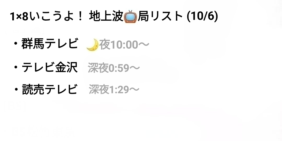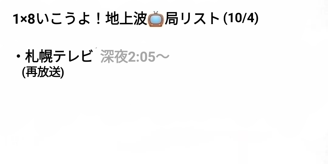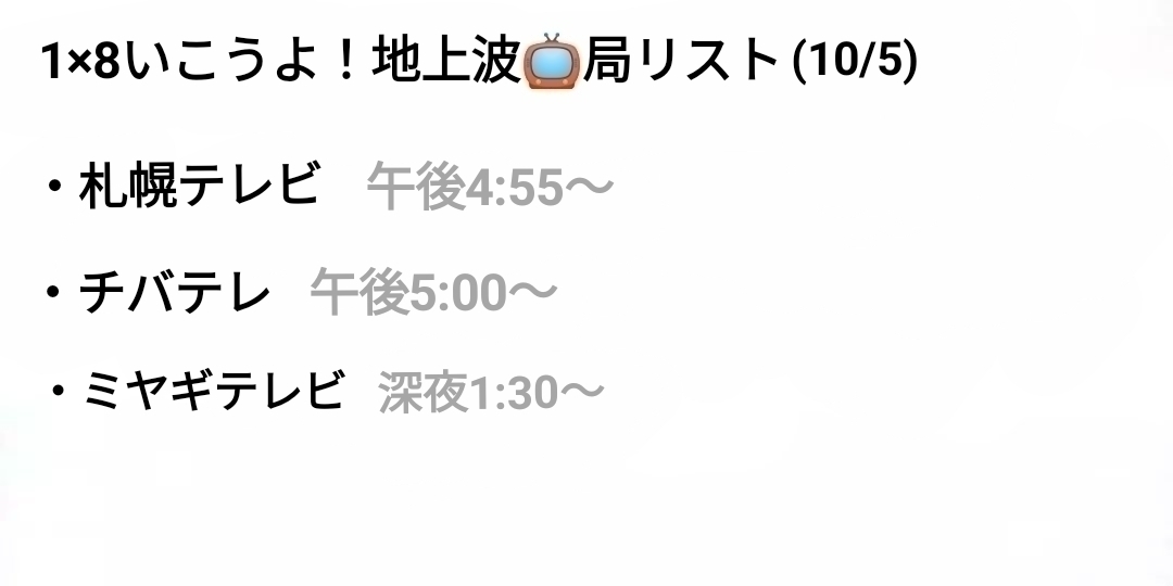 [各地の放送スケジュール] (10/5) 今日の 1×8いこうよ! 出演者(敬称略) #大泉洋 #木村洋二pic.x.com/mLxq6TFBHj