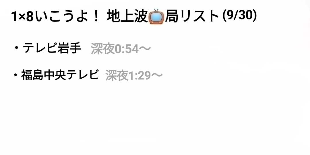 [各地の放送スケジュール] (9/28) 今日の 1×8いこうよ! 出演者(敬称略) #大泉洋 #木村洋二pic.x.com/XkOOLDpR7Z