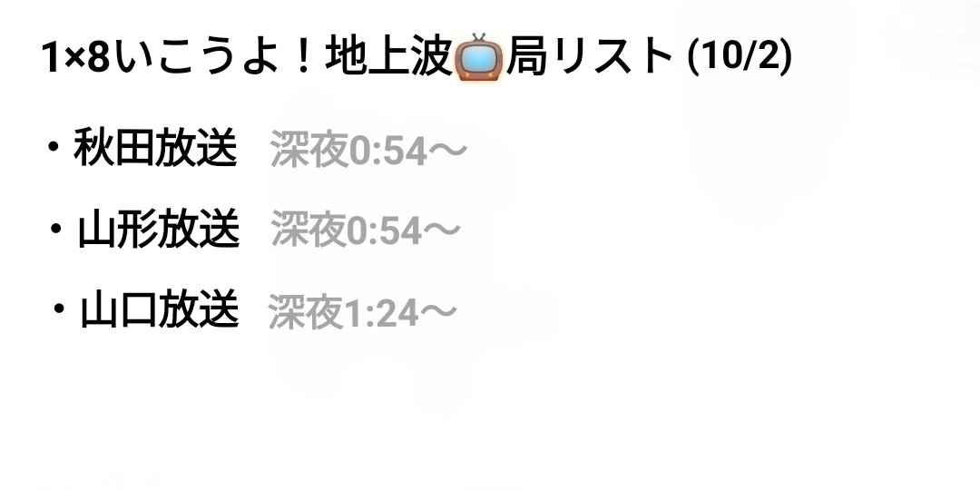 [各地の放送スケジュール] (10/2) 今日の 1×8いこうよ! 出演者(敬称略) #大泉洋 #木村洋二pic.x.com/mrUzEbzGla