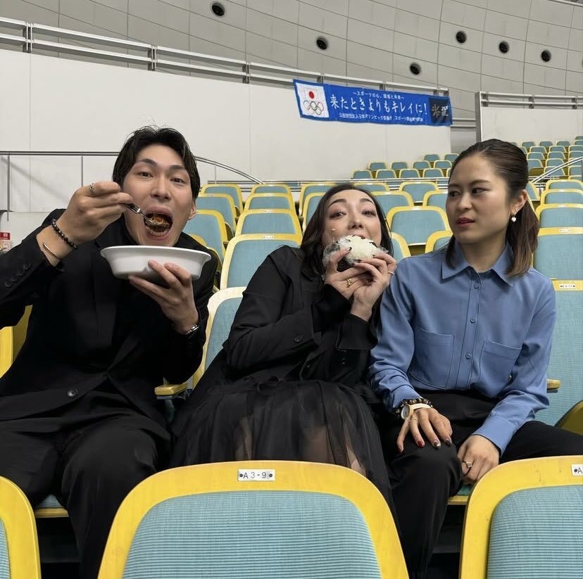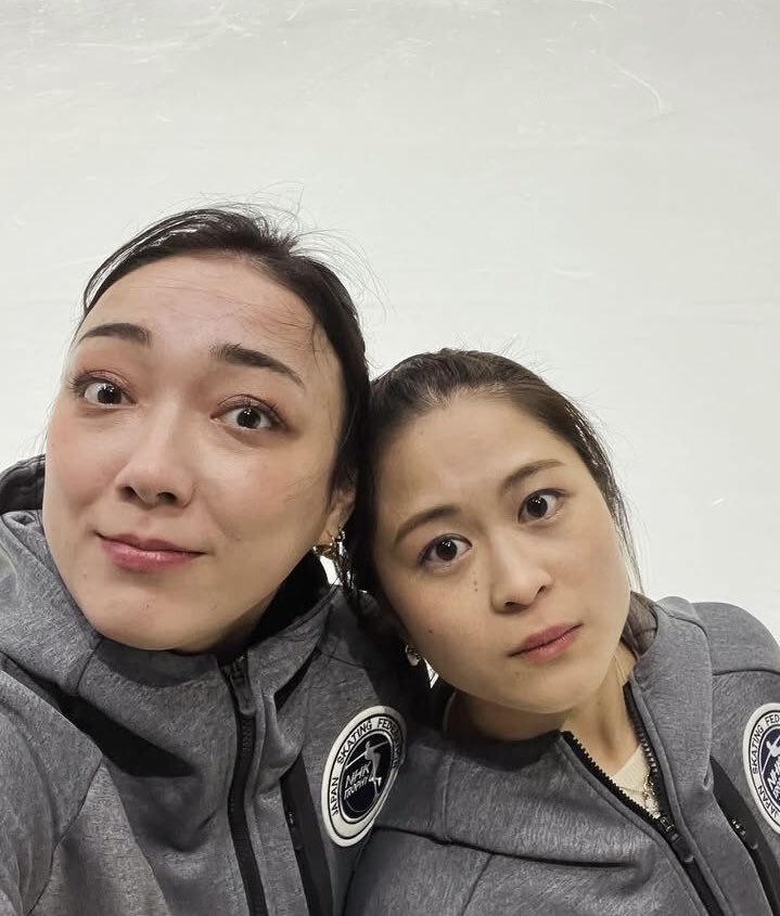 本郷理華ちゃんインスタより✨ 本人曰く凸凹コンビの知理華❤️🔥 久しぶりの再開だそう😌✨✨ またNHK杯で面白コンビネーションを お届けしてくれること期待してます😊👍 刑事くんとの3人トリオは最高だから✨ #本郷理華 #宮原知子 #田中刑事 pic.x.com/VJYW1TKUh9
