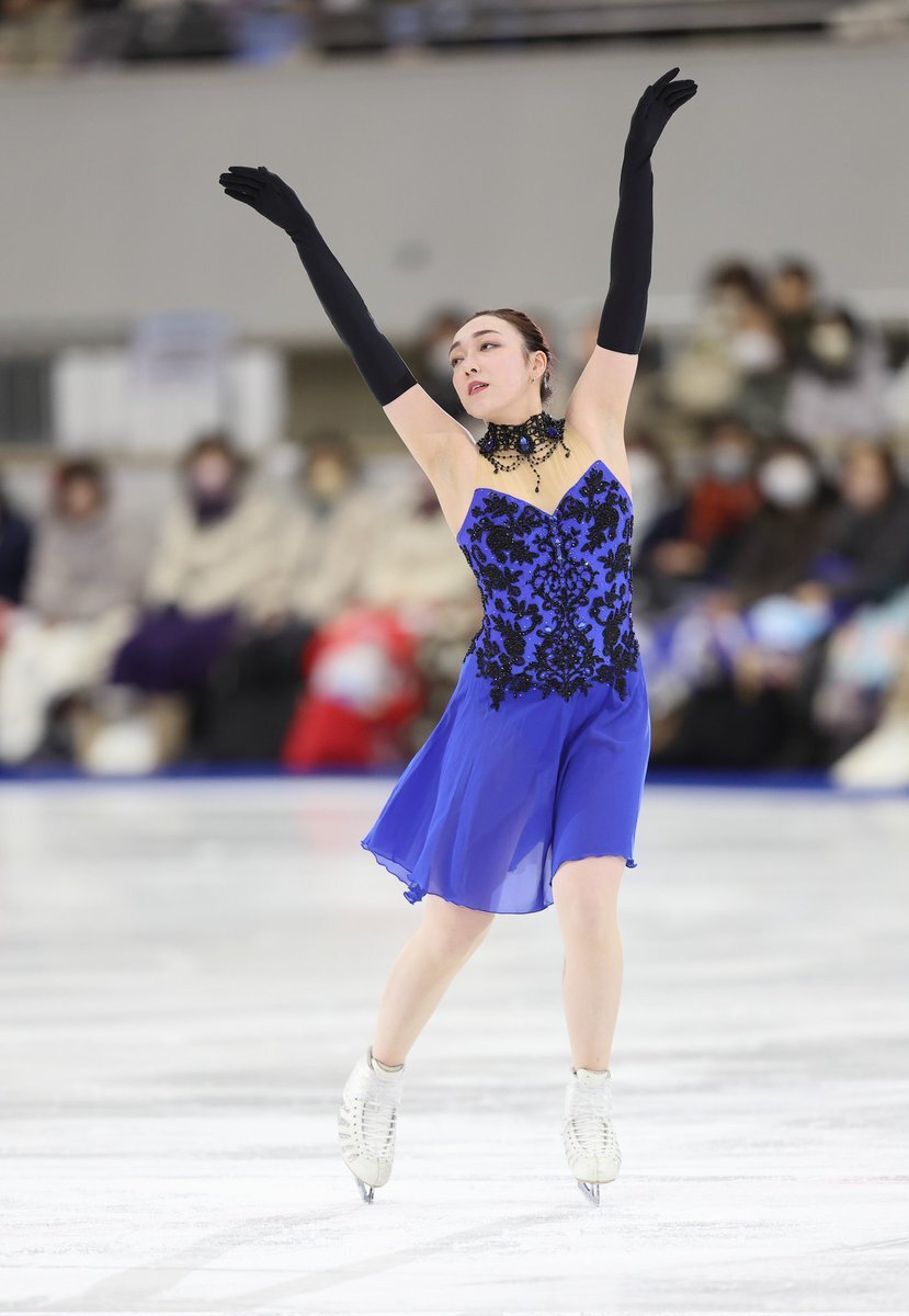 巻き戻して永見さんの演技見た。 これぞ永見千代乃 的な素晴らしい演技。 強い目力に力強くダイナミックな踊り、指先の細かいところまで気持ちがつたわっている所作。 本郷理華さんの振付けを自身で昇華した演技は素敵でした。 FSもガンバです。