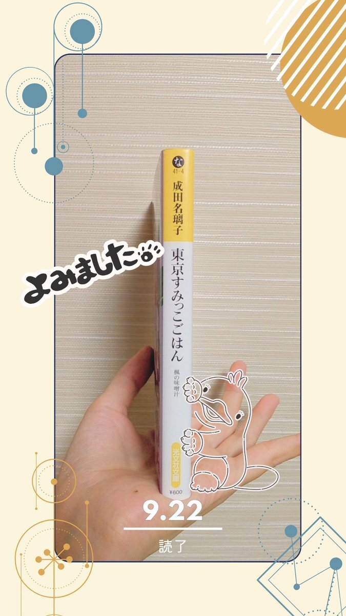 @narita_narico 東京すみっこごはん、読了しました📖 感想をお伝えしたくリプを書きなぐっていたら文字数制限が来てしまい長文になってしまうので本当に一言伝えようと思います。 この本に偶然であったけれど出会えて良かったです。 さらに続編があるとの事で、そちらも読んでみようと思います😌